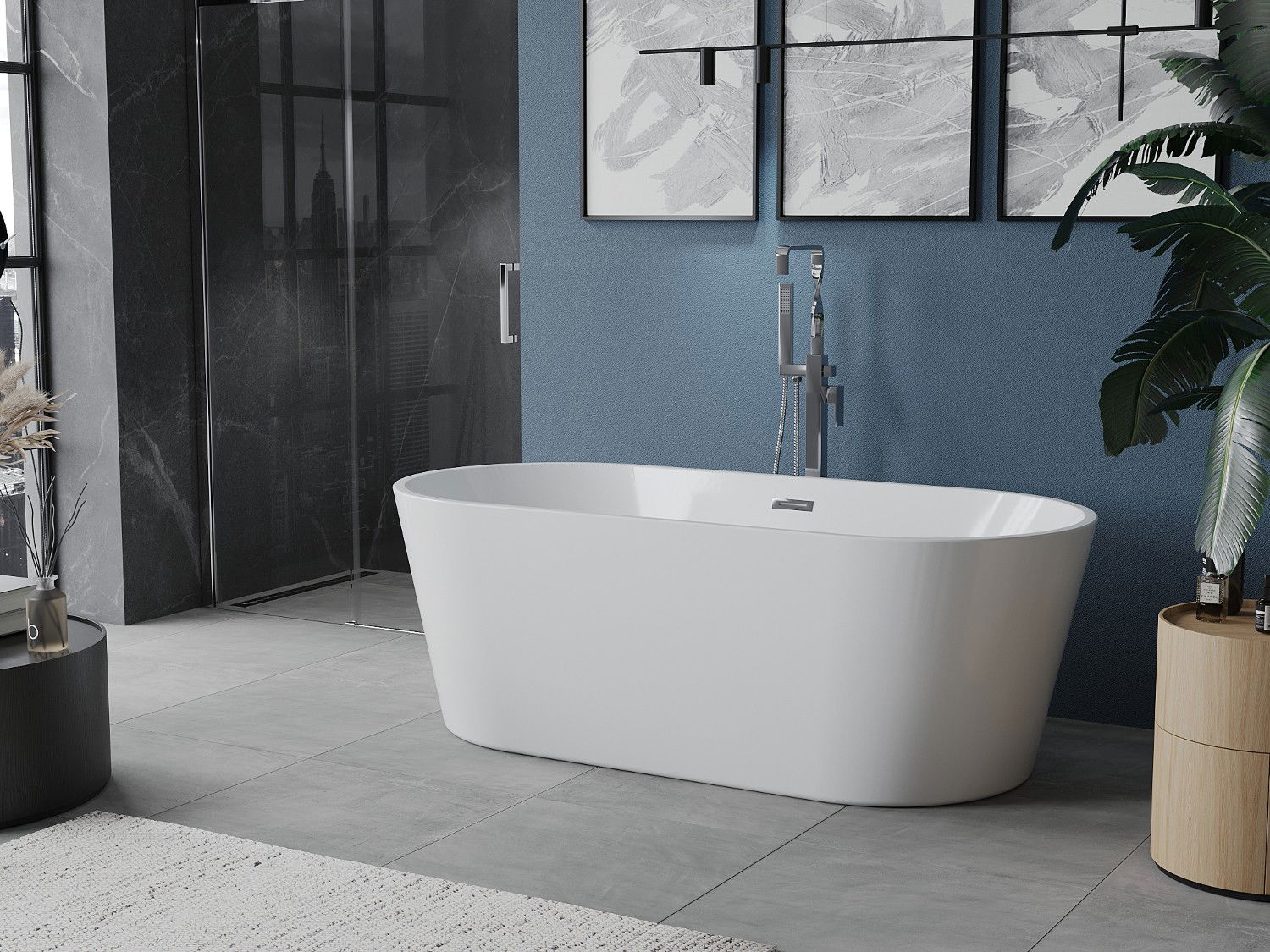 Mexen Luna freistehende Badewanne 180 x 80 cm, weiß, Überlauf Chrom - 52031808000-01