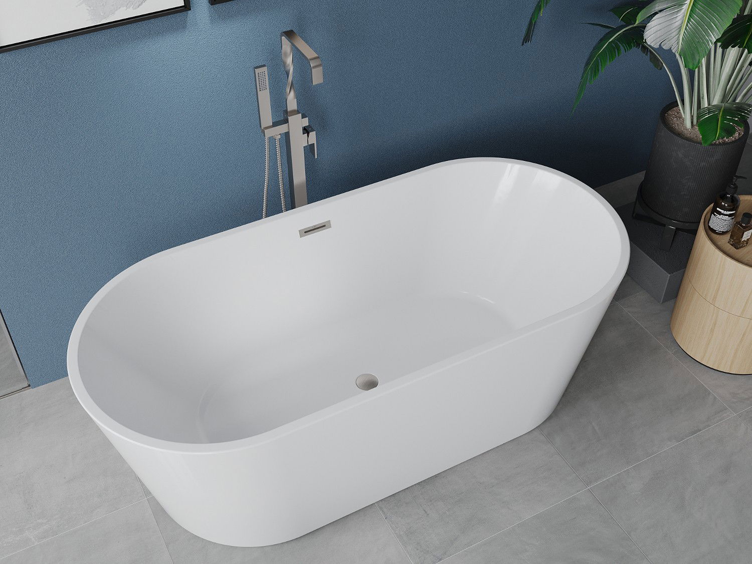 Mexen Luna freistehende Badewanne 180 x 80 cm, weiß, Überlauf gebürsteter Nickel - 52031808000-97