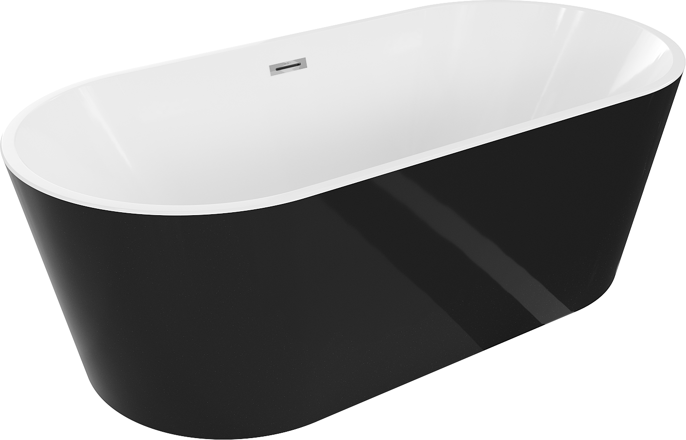 Mexen Luna freistehende Badewanne 180 x 80 cm, weiß/schwarz, Überlauf Chrom - 52031808075-01