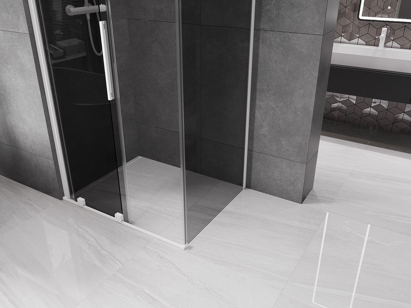 Die Versiegelungsschwelle bietet einen effektiven Schutz vor Wasserabfluss außerhalb der Dusche und schützt das Badezimmer vor Überschwemmungen. Dank Aluminium ist die Versiegelungsschwelle korrosionsbeständige und mechanische Schäden.