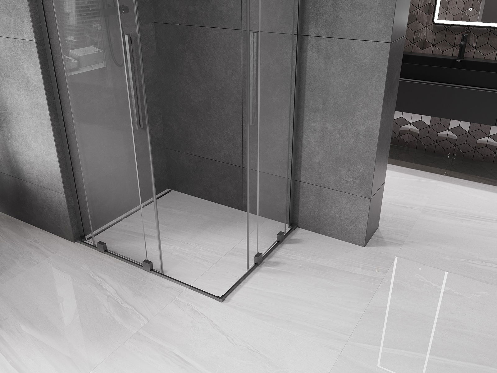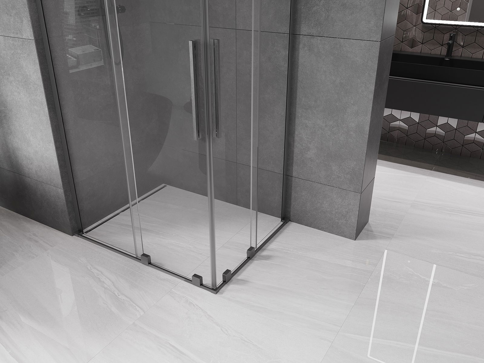 Mexen Velar L Duo Duschkabine, Schiebetür, 100 x 90 cm, transparent, gun gray gebürstet - 871-100-090-02-03-66