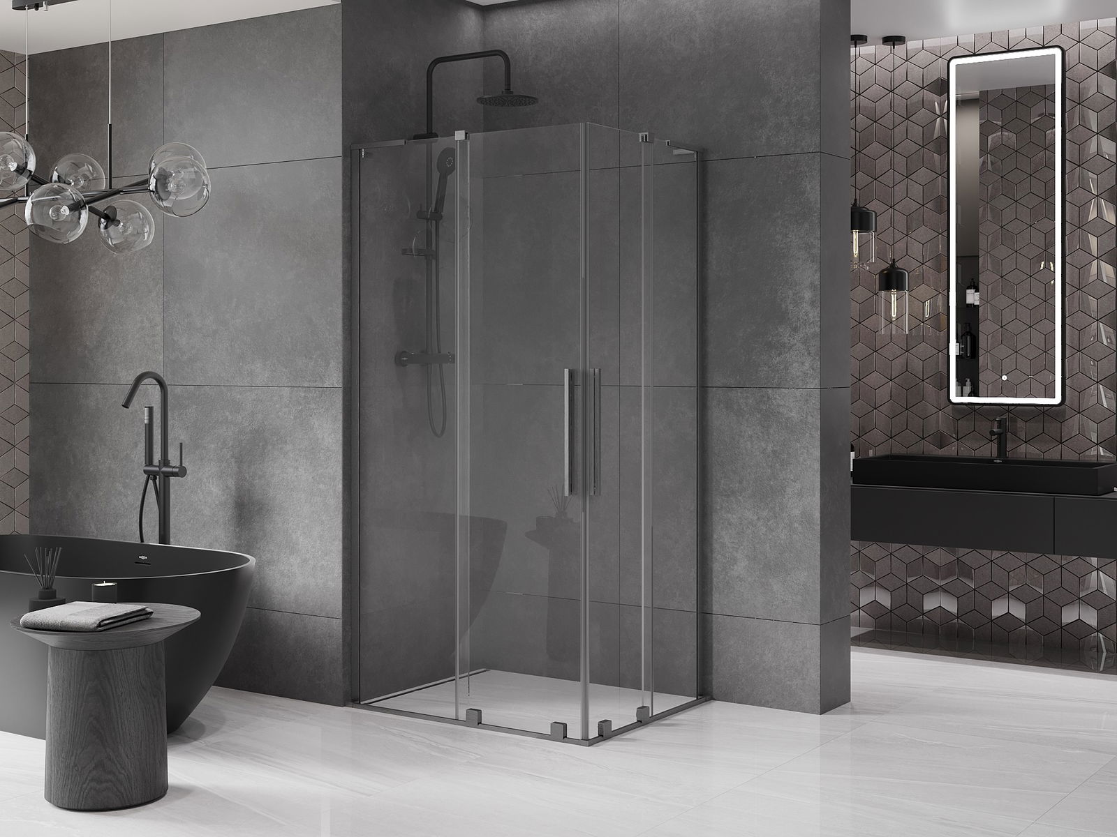 Der praktische und bequeme Griff ist aus rostfreiem Stahl gefertigt. Die modische Form, kombiniert mit einer auf die Farbe der Profile abgestimmten Oberfläche, verleiht dem Ganzen ein modernes und stilvolles Aussehen, das die Ästhetik eines jeden Badezimmers aufwertet.
