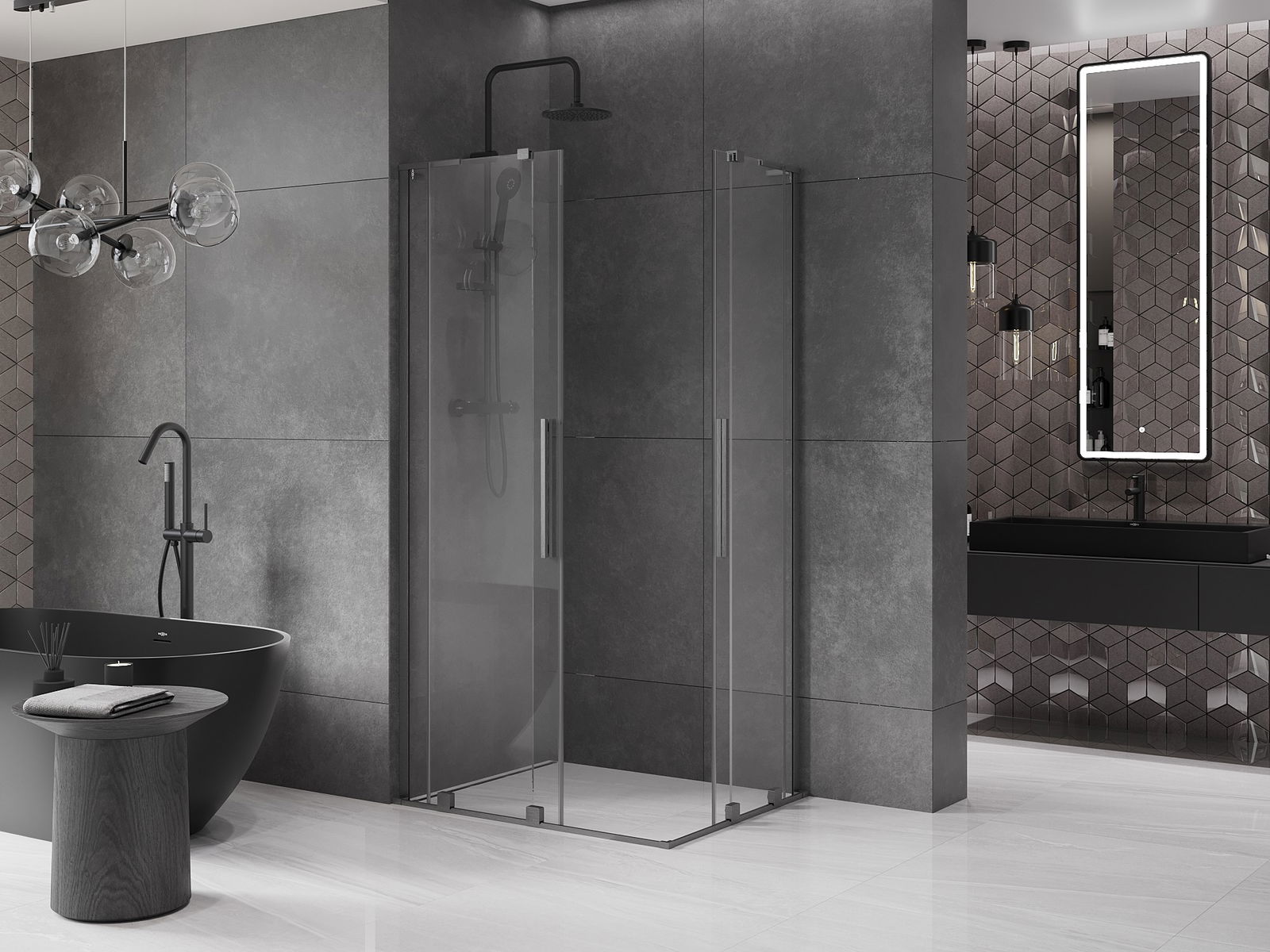 Dank der Verwendung eines universellen Montagesystems können die Duschtüren je nach Ihren Bedürfnissen rechts oder links montiert werden. Dank dessen können Sie problemlos eine Dusche entwerfen, die auf den Raum des Badezimmers zugeschnitten ist.