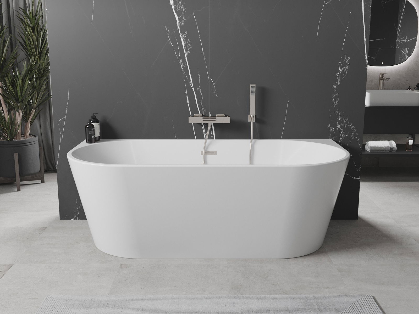 Mexen Oval Badewanne wandhängend 180 x 80 cm, weiß, Überlauf in gebürstetem Nickel - 52671808000-97
