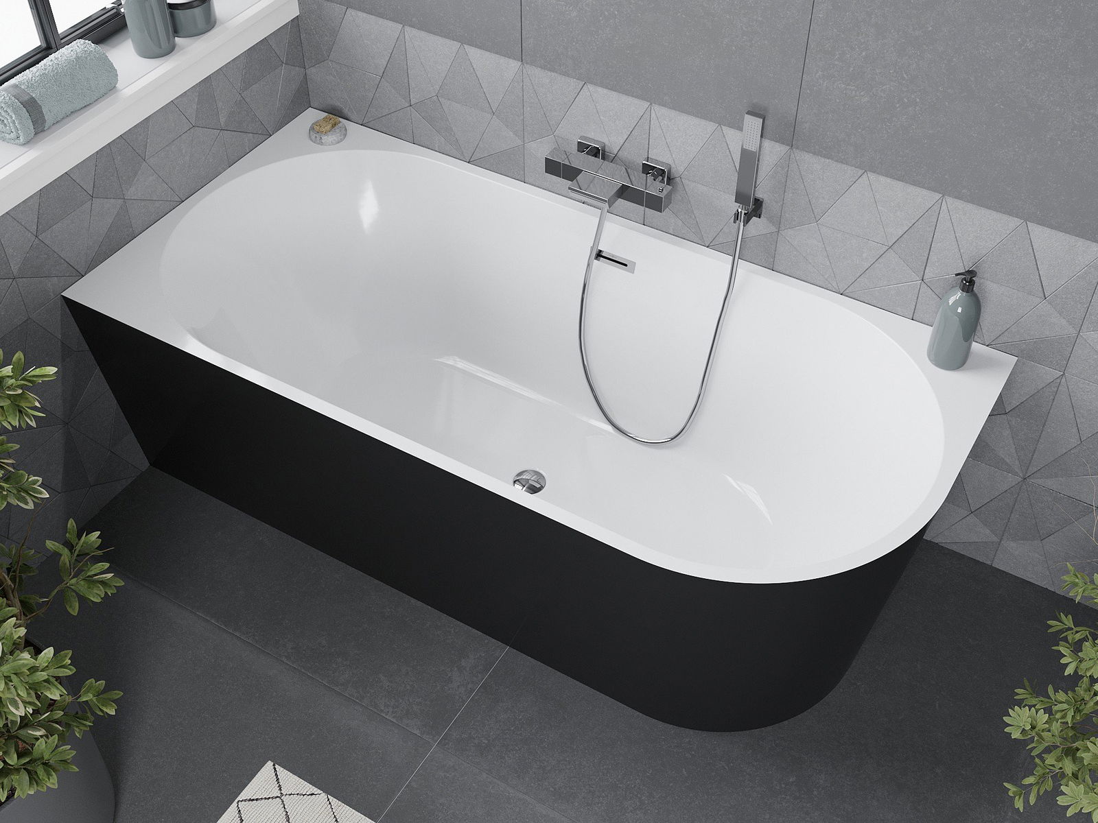 Mexen Mia freistehende linksseitige Badewanne 150 x 75 cm, weiß/schwarz, Überlauf chrom - 52691507575L-01