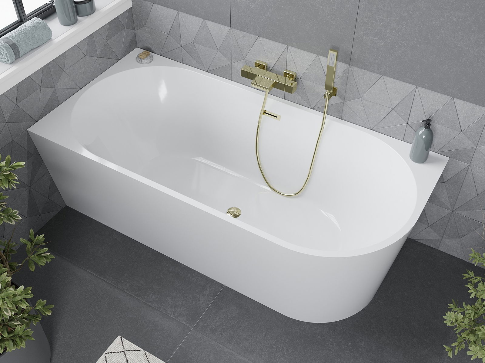 Die freistehende Eckbadewanne links 160 x 75 cm kombiniert Eleganz mit Funktionalität. Sie ist aus sanitärem Acryl gefertigt und zeichnet sich durch ihre weiße Farbe und glänzende Oberfläche aus, was ihr ein modernes Aussehen verleiht. Ausgestattet mit einem goldenen Siphon und einer Überlauföffnung, ist sie beständig gegen Mattierung und UV-Strahlung, was eine langfristige Nutzung garantiert. Ihre rechteckige Form und das außergewöhnliche Finish machen sie zur idealen Ergänzung für jedes moderne Badezimmerdesign.