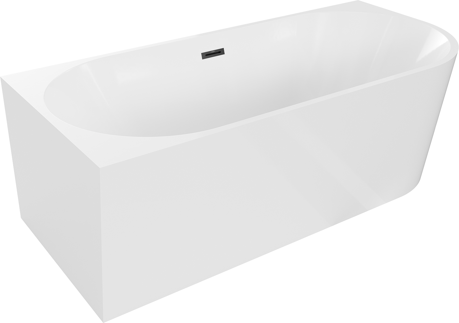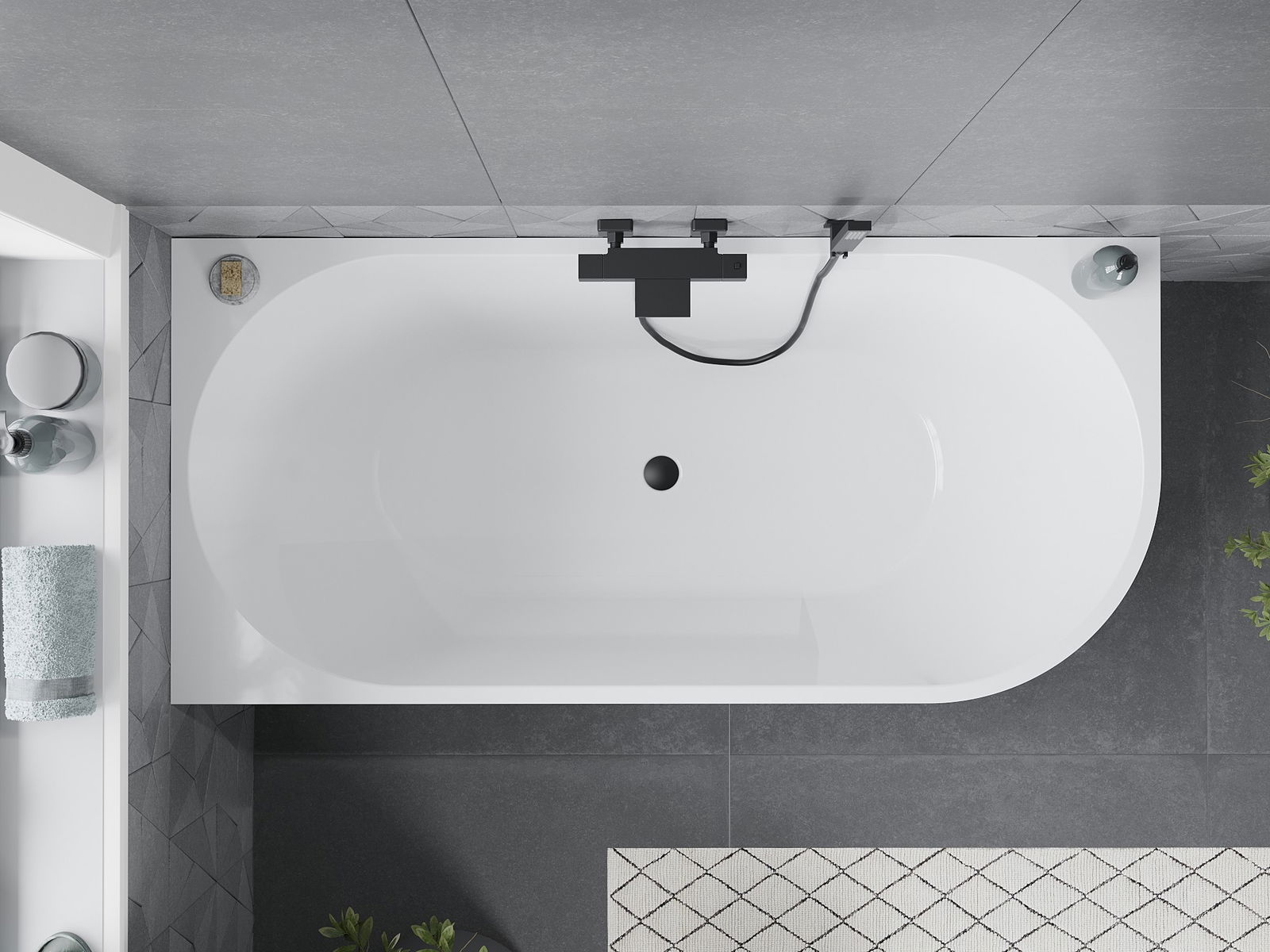 Mexen Mia freistehende Eckbadewanne links 160 x 75 cm, weiß, schwarzer Überlauf - 52691607500L-70