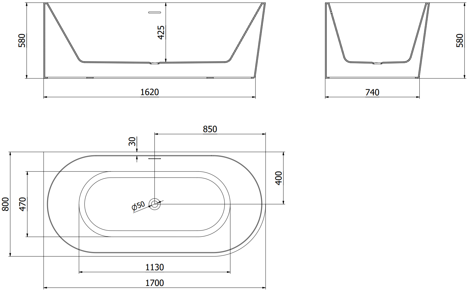 Im Set befindet sich ein Siphon mit Klick-Klack-Stopfen, der das schnelle Öffnen und Schließen des Ablaufventils in der Badewanne ermöglicht. Vergessen Sie die Suche nach dem Stopfen vor dem Baden! Ein Klick genügt, um das Wasser zu stoppen oder abzulassen.