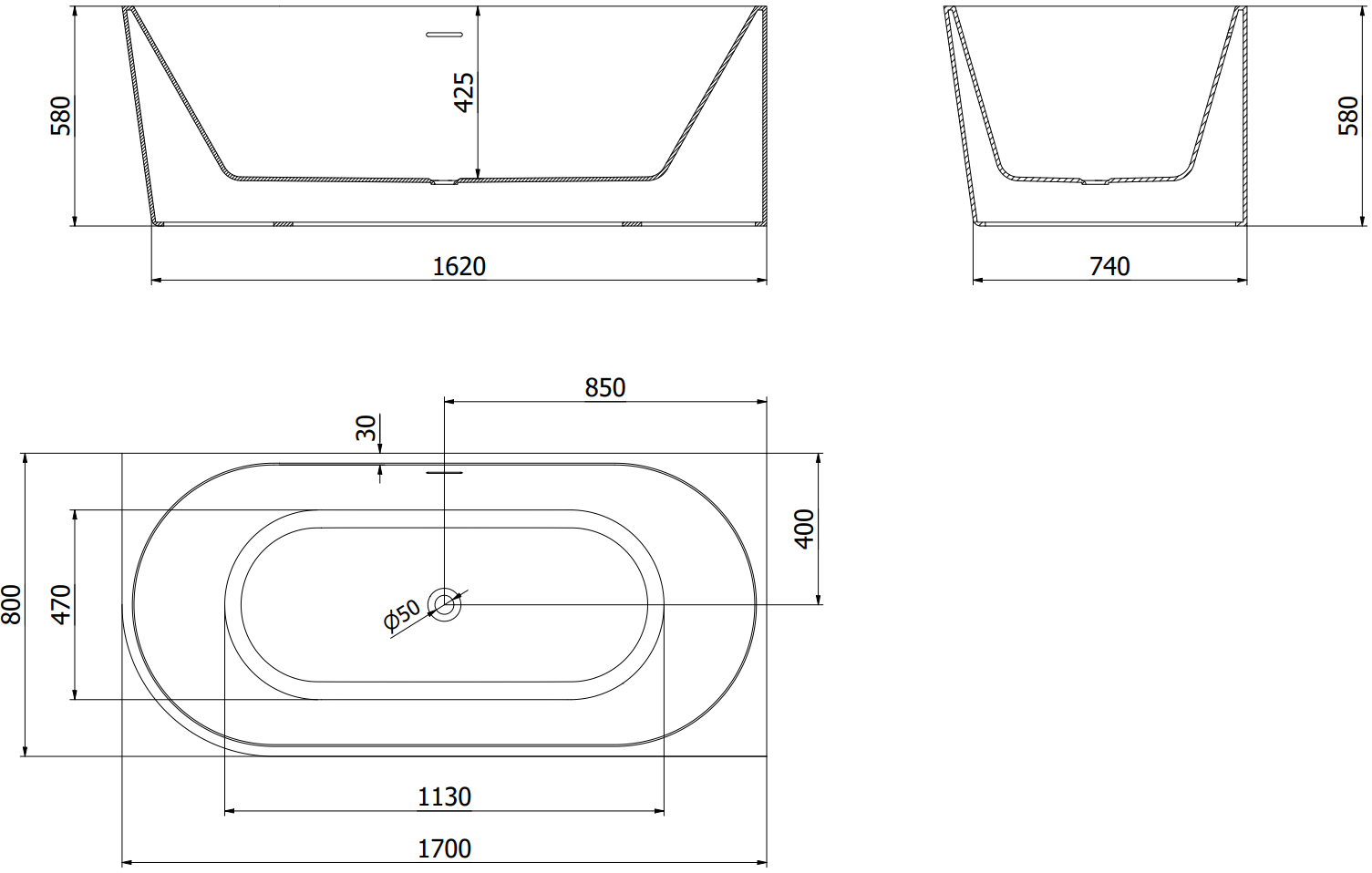 Im Set befindet sich ein Siphon mit Klick-Klack-Stopfen, der das schnelle Öffnen und Schließen des Ablaufventils in der Badewanne ermöglicht. Vergessen Sie die Suche nach dem Stopfen vor dem Baden! Ein Klick genügt, um das Wasser zu stoppen oder abzulassen.