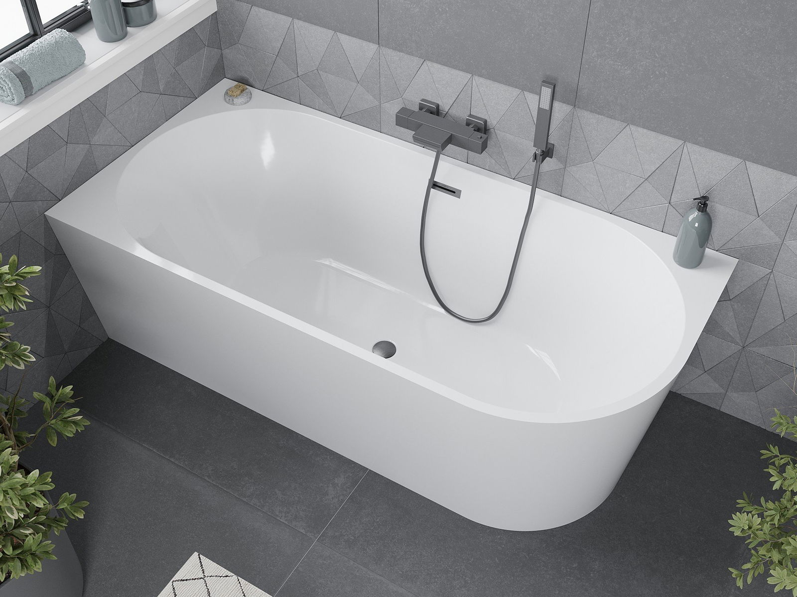 Mexen Mia freistehende linke Badewanne 180 x 80 cm, weiß, gebürstetes gun gray Overflow - 52691808000L-66