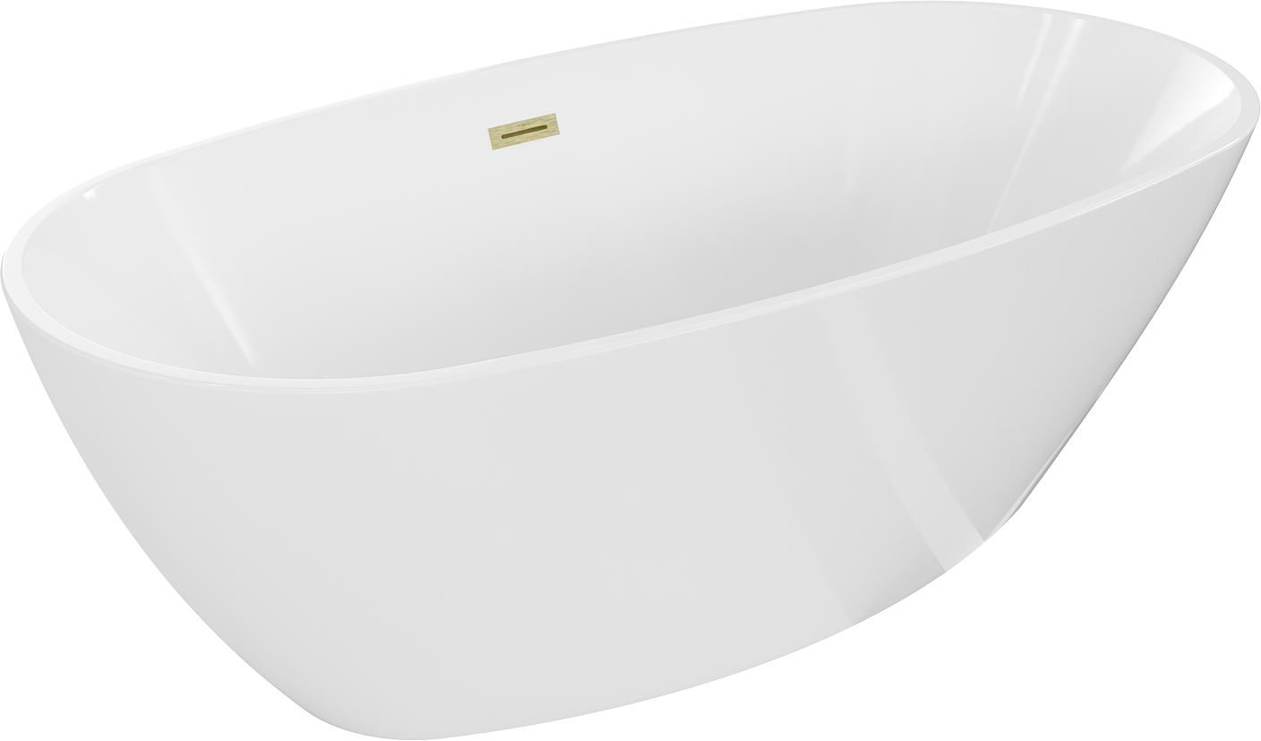 Mexen Eris freistehende Badewanne 155 x 80 cm, weiß, mit brushed gold Überlauf - 53441558000-55