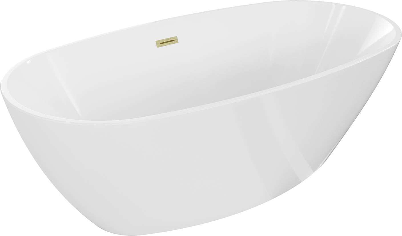 Mexen Eris freistehende Badewanne 155 x 80 cm, weiß, Überlauf gebürstetes Gold - 53441558000-55