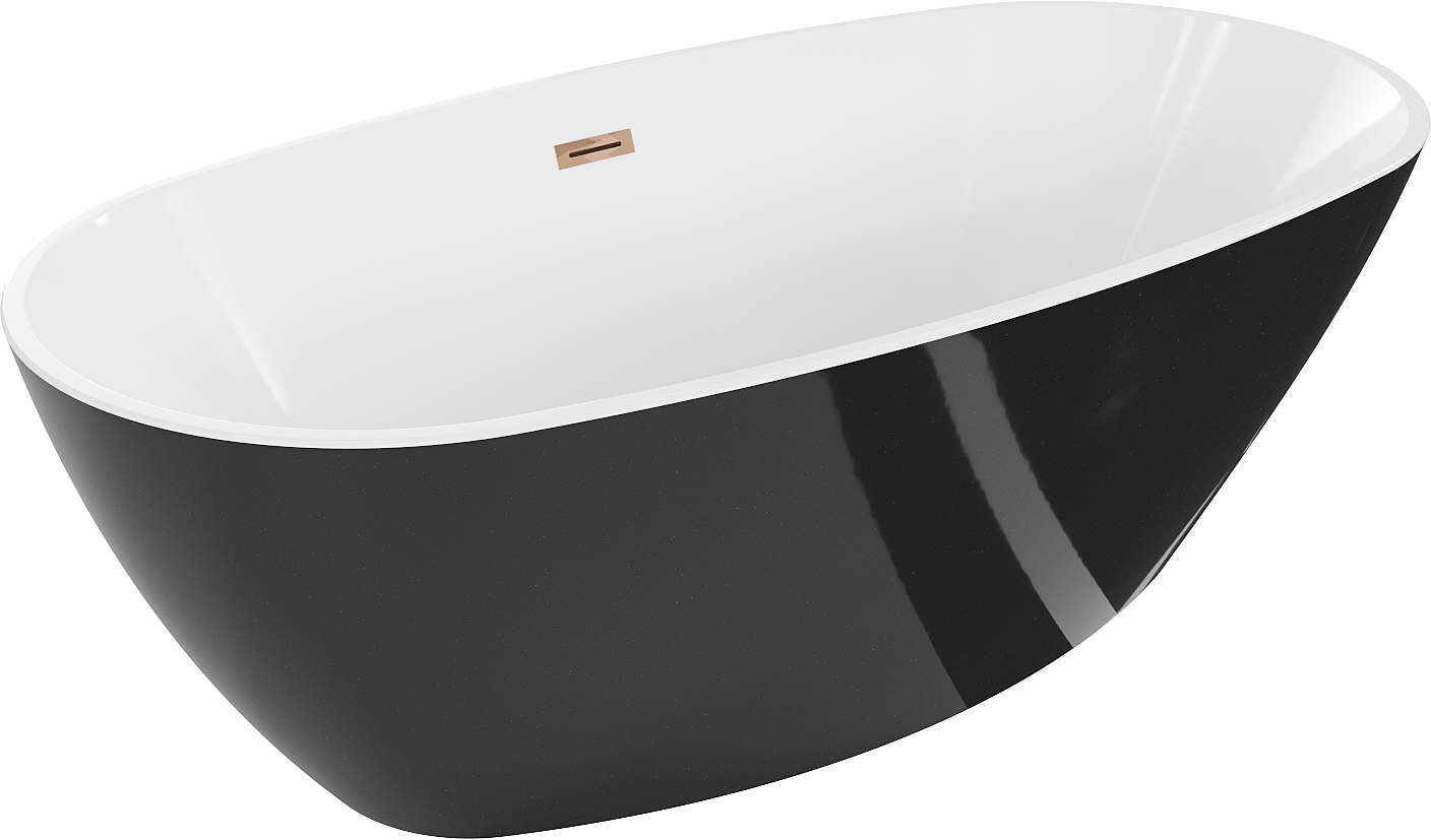 Mexen Eris freistehende Badewanne 155 x 80 cm, weiß/schwarz, mit roségoldem Überlauf - 53441558075-60