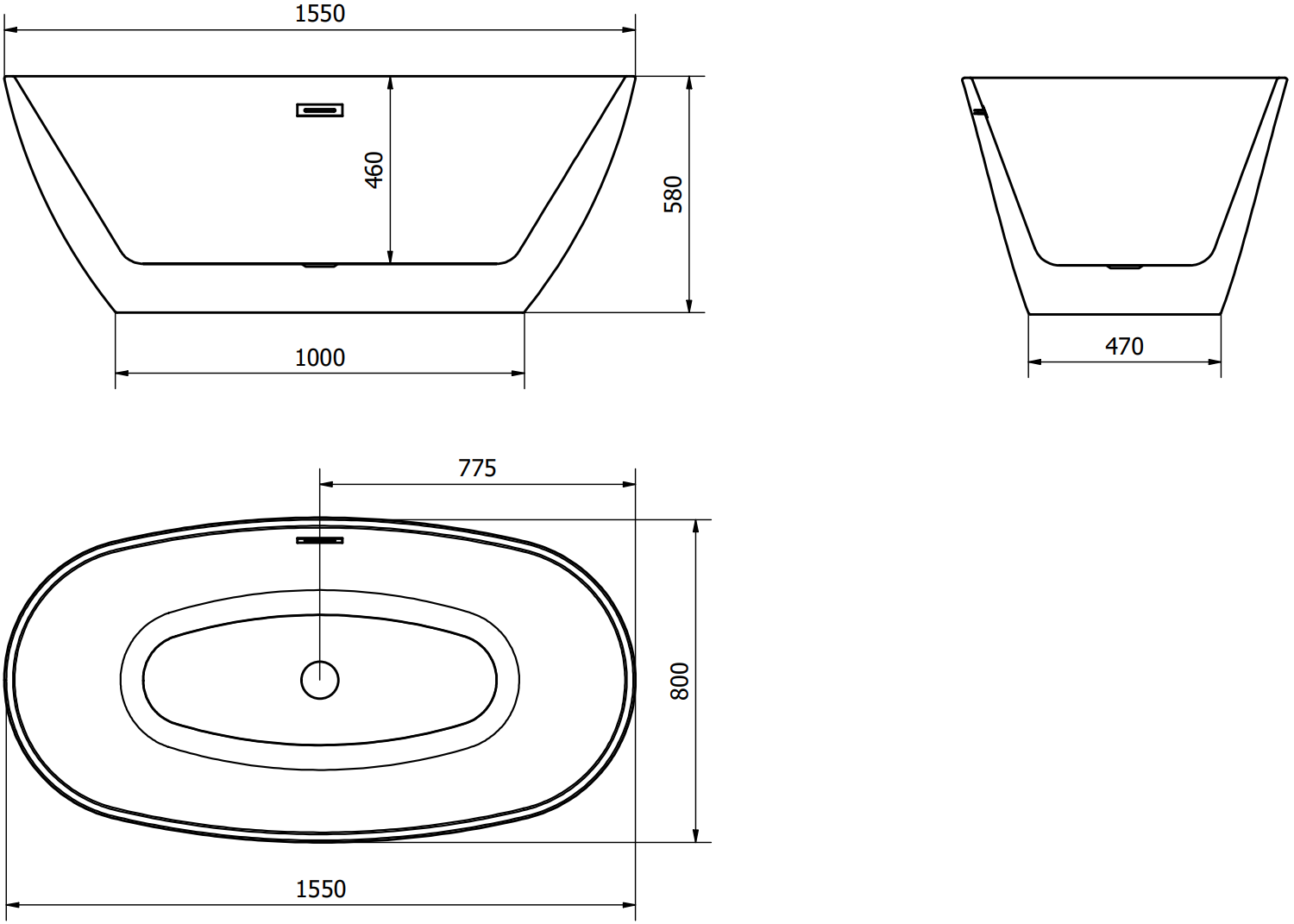 Mexen Eris freistehende Badewanne 155 x 80 cm, weiß/schwarz, Überlauf Roségold - 53441558075-60