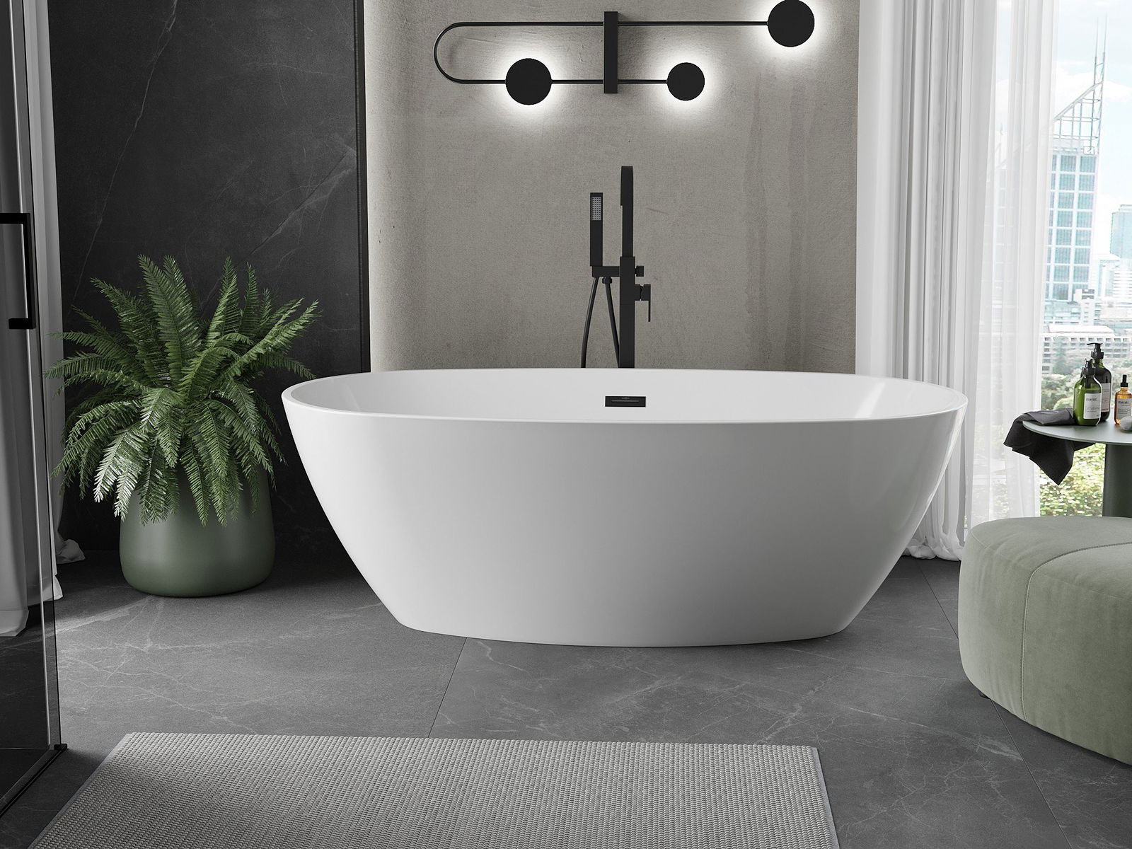 Mexen Eris freistehende Badewanne 170 x 80 cm, weiß, schwarze Überlauf - 53441708000-70