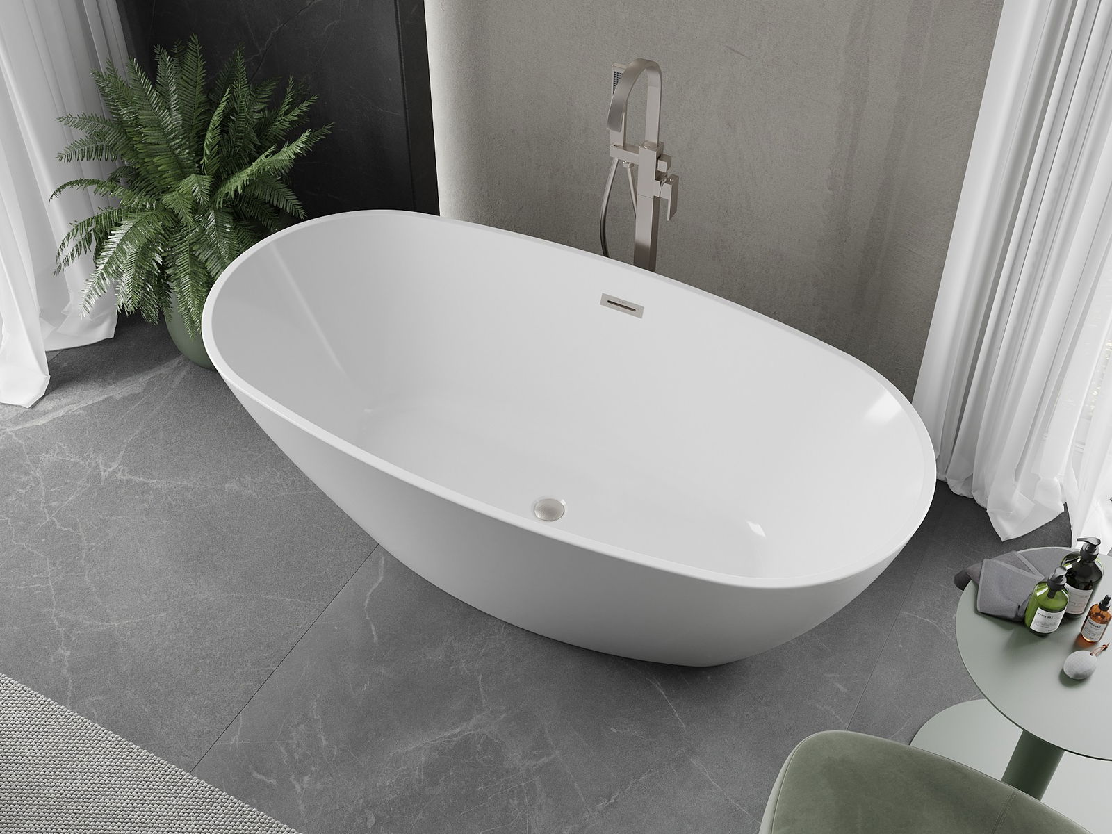 Die freistehende Badewanne Mexen Eris in den Maßen 170 x 80 cm ist eine ausgezeichnete Wahl, die Eleganz mit Funktionalität verbindet. Hergestellt aus Sanitäracryl, bietet sie Komfort und Langlebigkeit. Die weiße Farbe und das gebürstete Nickel-Finish passen perfekt in moderne Innenräume. Dank ihrer ovalen Form verleiht die Wanne nicht nur Charme, sondern garantiert auch Ergonomie bei der Nutzung. Das Material ist UV- und mattierungsbeständig und gewährleistet ein ästhetisches Aussehen über lange Zeit.
