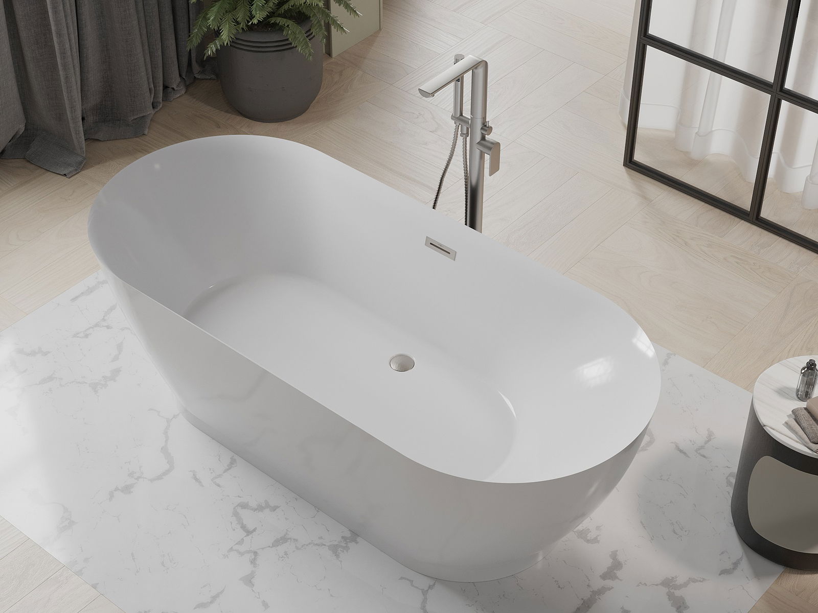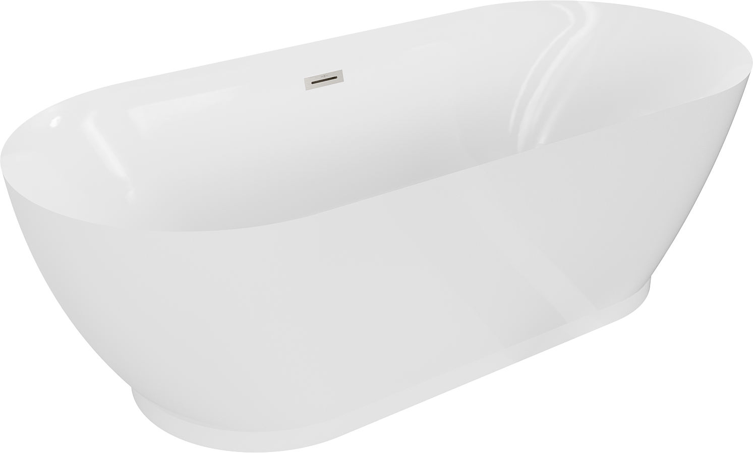 Mexen Roxy freistehende Badewanne 180 x 85 cm, weiß, mit Überlauf in gebürstetem Nickel - 51201808500-97