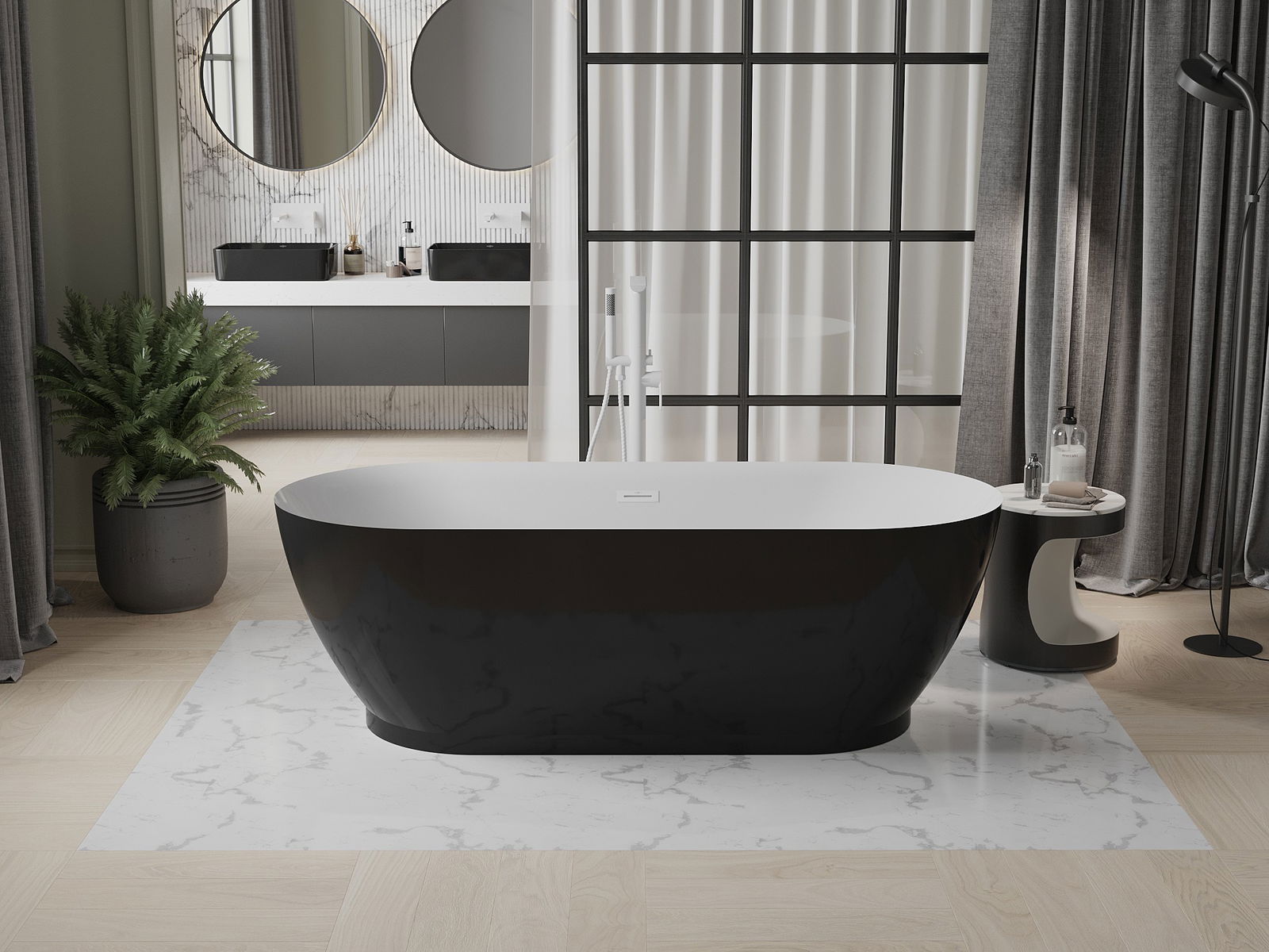 Mexen Roxy freistehende Badewanne 180 x 85 cm, weiß/schwarz, weißer Überlauf - 51201808575-20