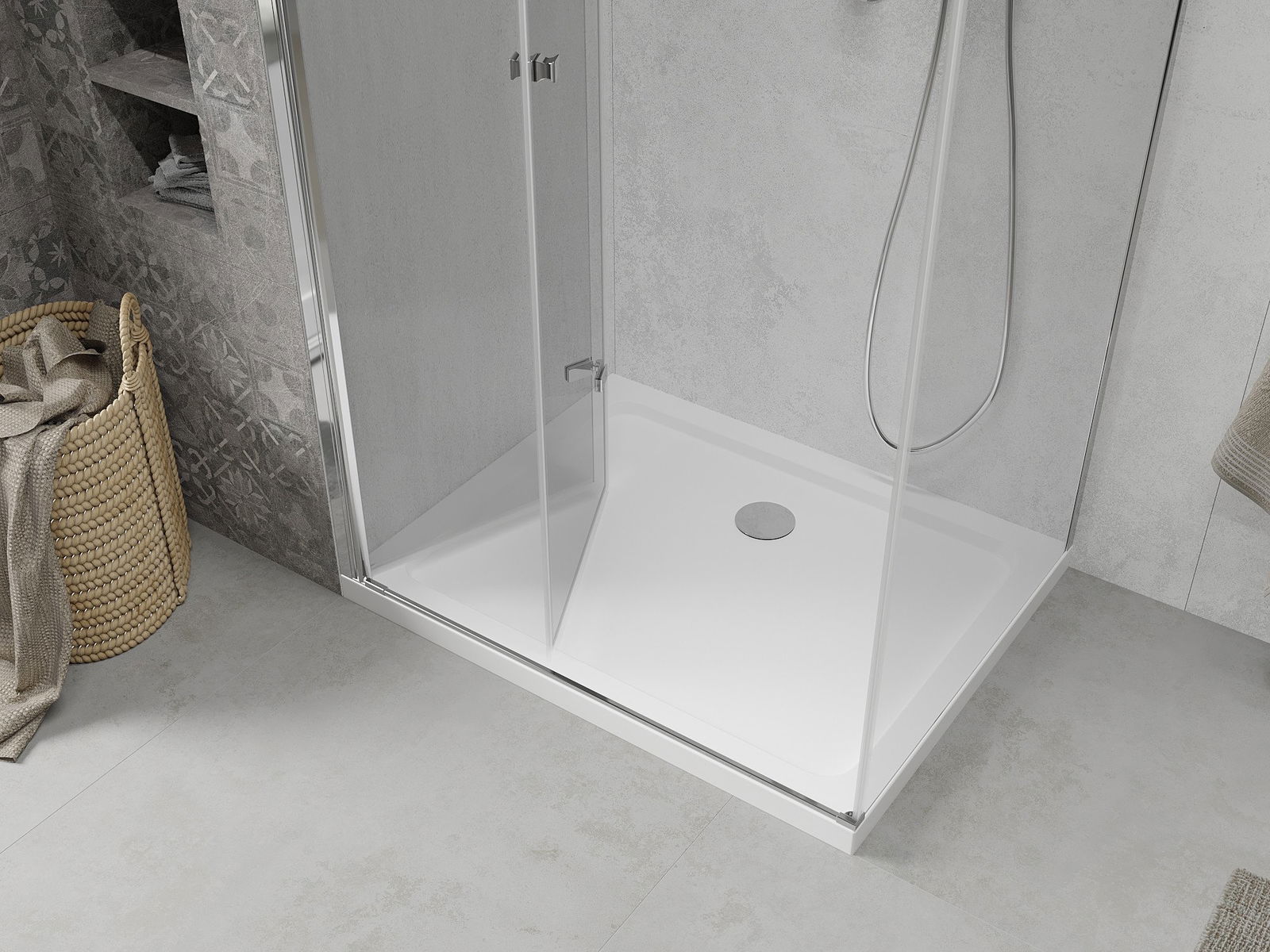 Mexen Lima faltbare Duschkabine 80 x 70 cm, transparent, Chrom + Duschwanne Flat - 856-080-070-01-00-4010