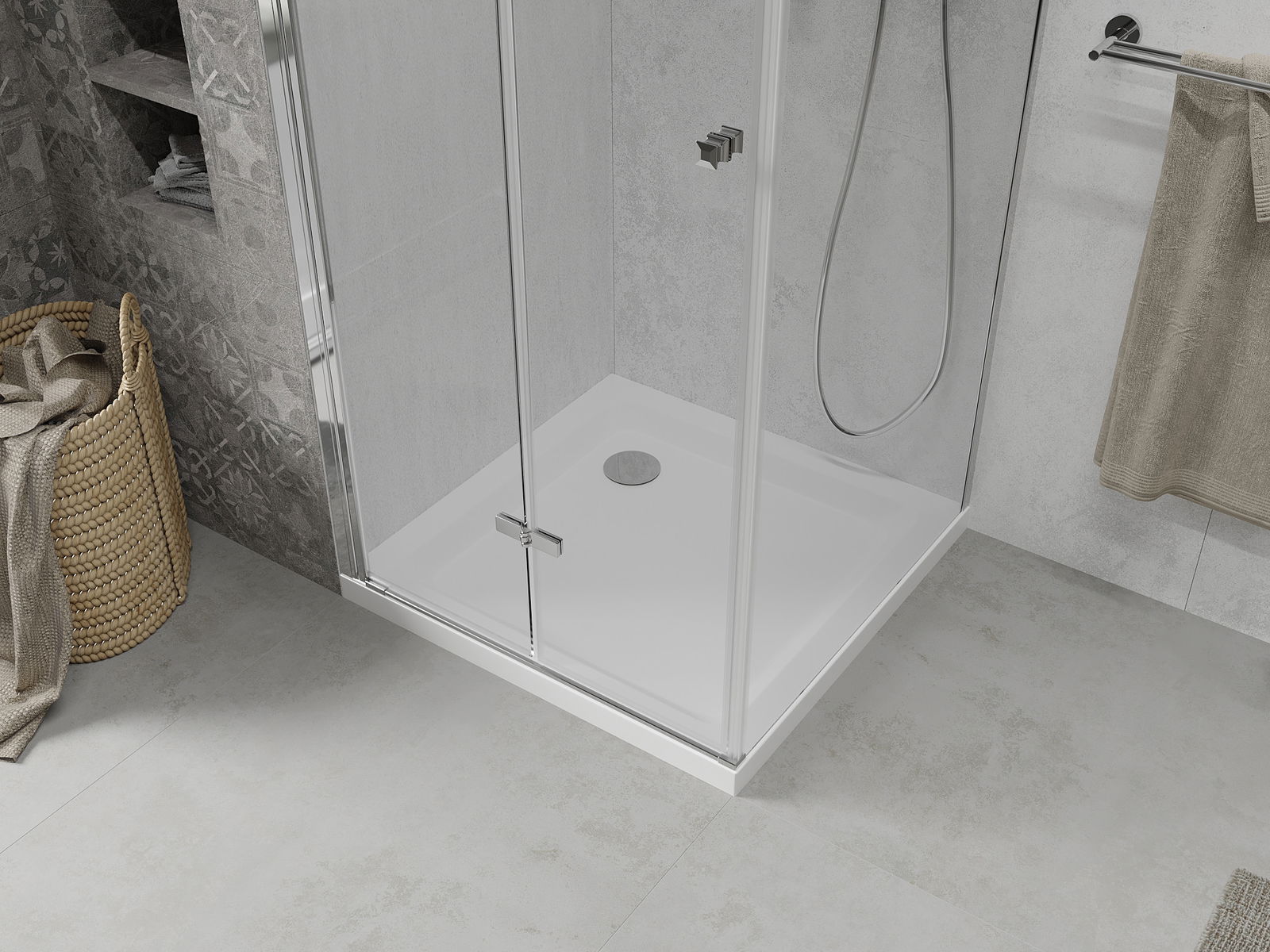 Mexen Lima Faltbare Duschkabine 80 x 80 cm, transparent, Chrom + Flat Duschwanne - 856-080-080-01-00-4010