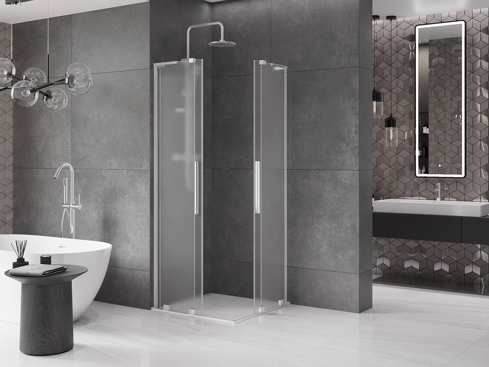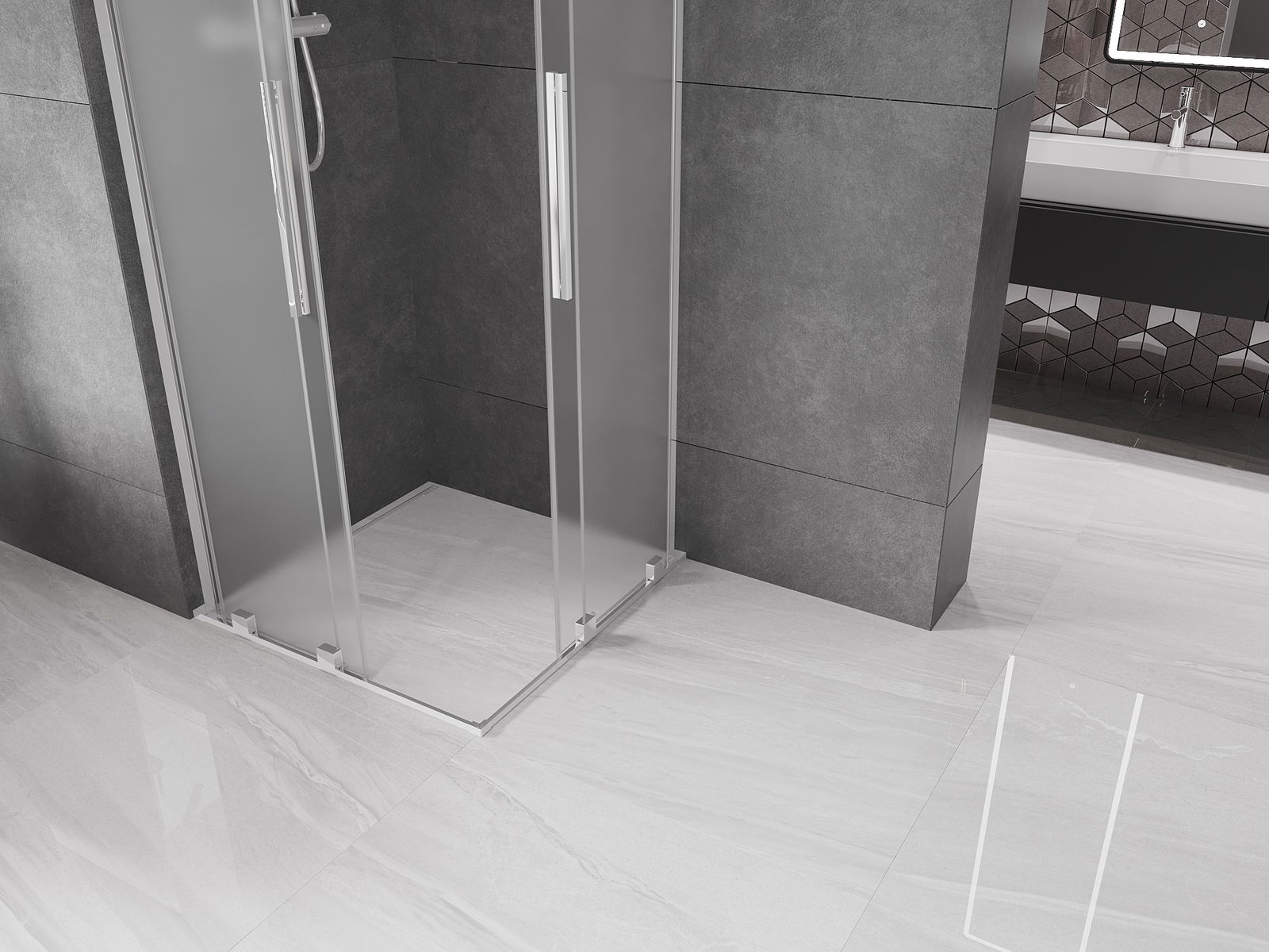 Das Produkt kann je nach Bedarf sowohl auf einer Duschwanne als auch direkt auf dem Boden montiert werden. Die universelle Montagemethode ermöglicht die Anpassung des Produkts an verschiedene Arten von Badezimmern und Raumkonfigurationen.