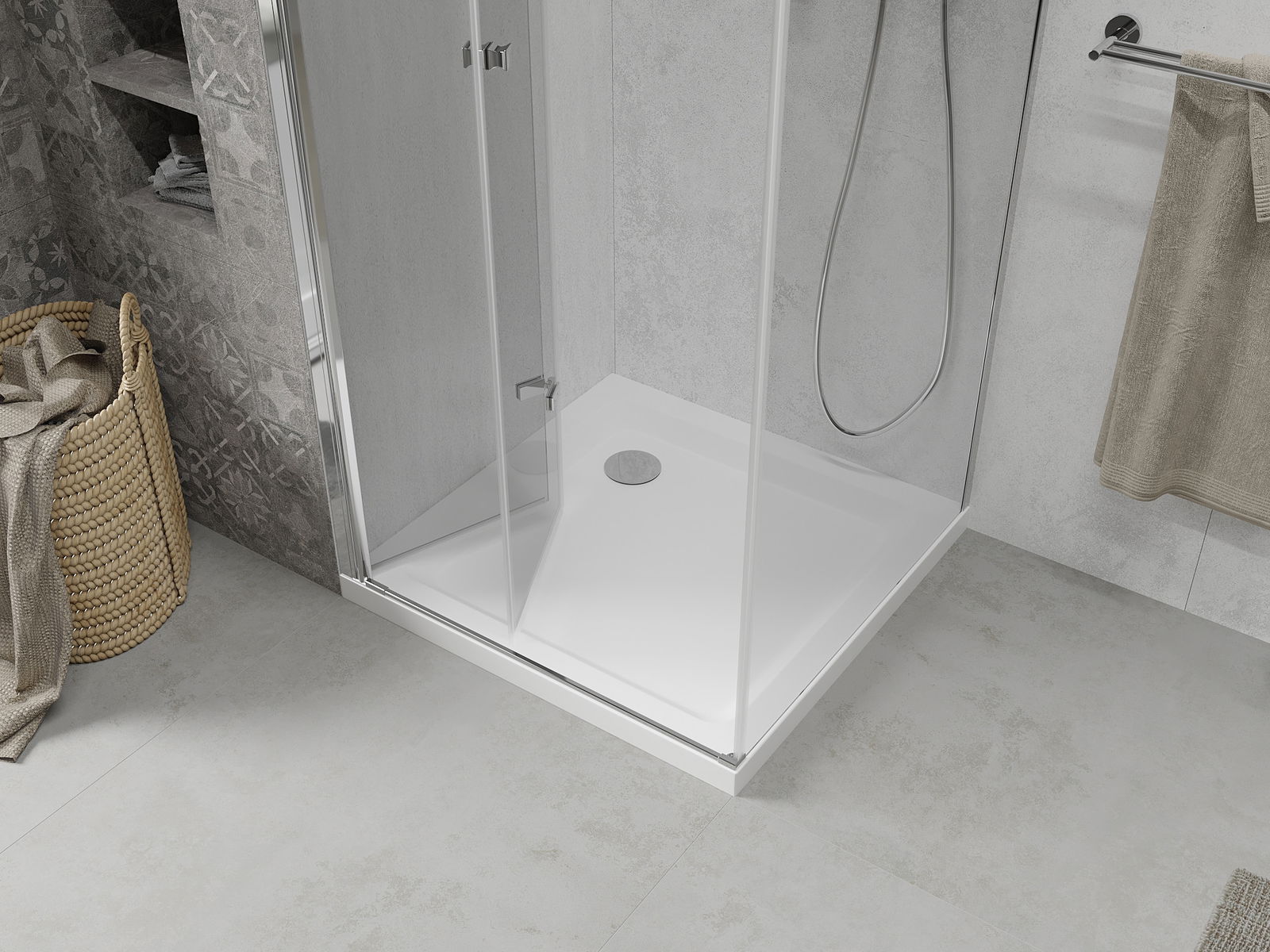 Mexen Lima Faltbare Duschkabine 100 x 100 cm, transparent, Chrom + Duschwanne Flat - 856-100-100-01-00-4010