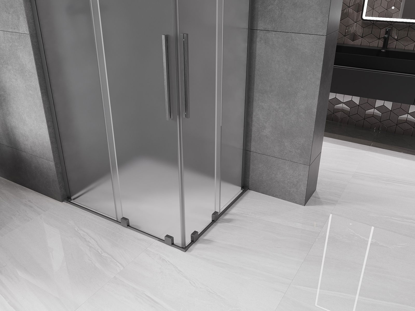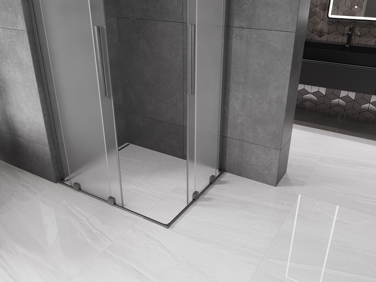 Mexen Velar L Duo Schiebeduschkabine 100 x 90 cm, matt, gebürstet gun gray - 871-100-090-02-33-66