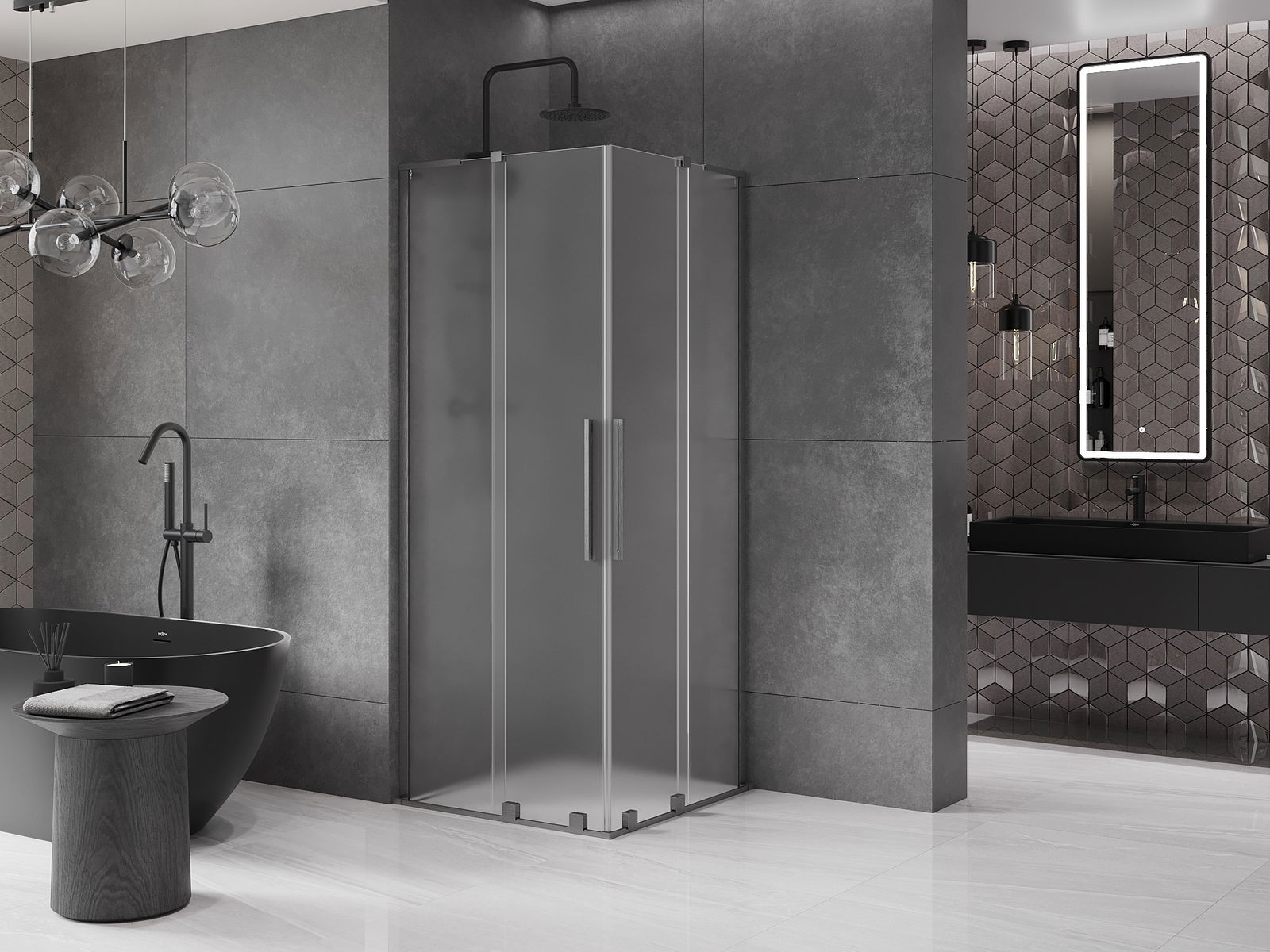Das Produkt kann je nach Bedarf sowohl auf einer Duschwanne als auch direkt auf dem Boden montiert werden. Die universelle Montagemethode ermöglicht die Anpassung des Produkts an verschiedene Arten von Badezimmern und Raumkonfigurationen.