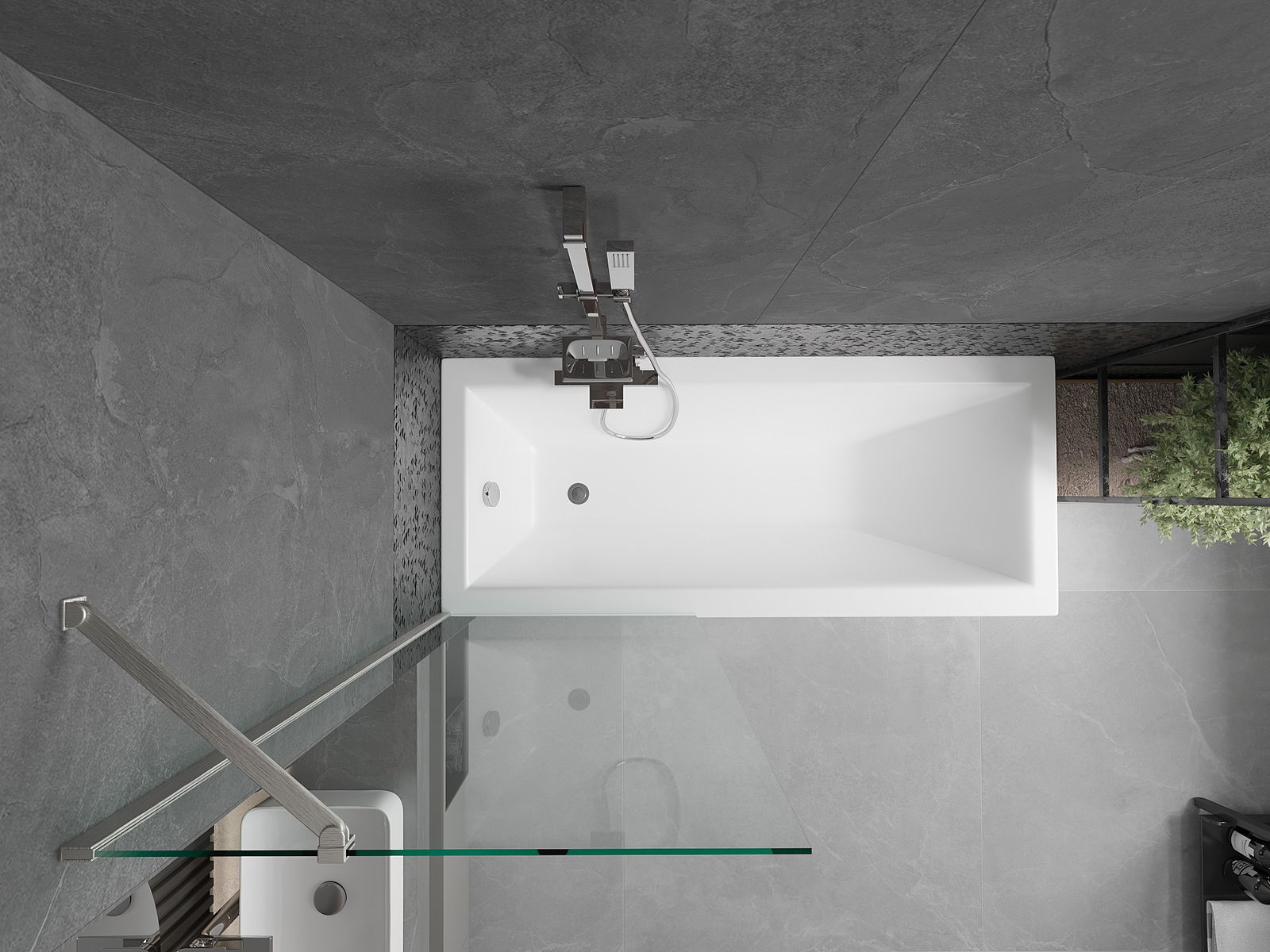 Effektiver Schutz gegen Wasser beim Baden. Der Bildschirm hat Dichtungen, die sich perfekt an das Glas des Glass und an der Badewanne der Badewanne anpassen. Eine funktionale Lösung, um Sicherheit und einfache Wartung zu gewährleisten.