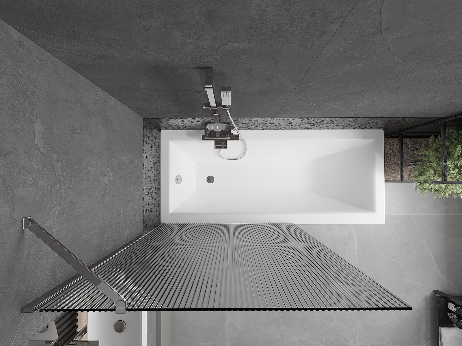 Effektiver Schutz gegen Wasser beim Baden. Der Bildschirm hat Dichtungen, die sich perfekt an das Glas des Glass und an der Badewanne der Badewanne anpassen. Eine funktionale Lösung, um Sicherheit und einfache Wartung zu gewährleisten.