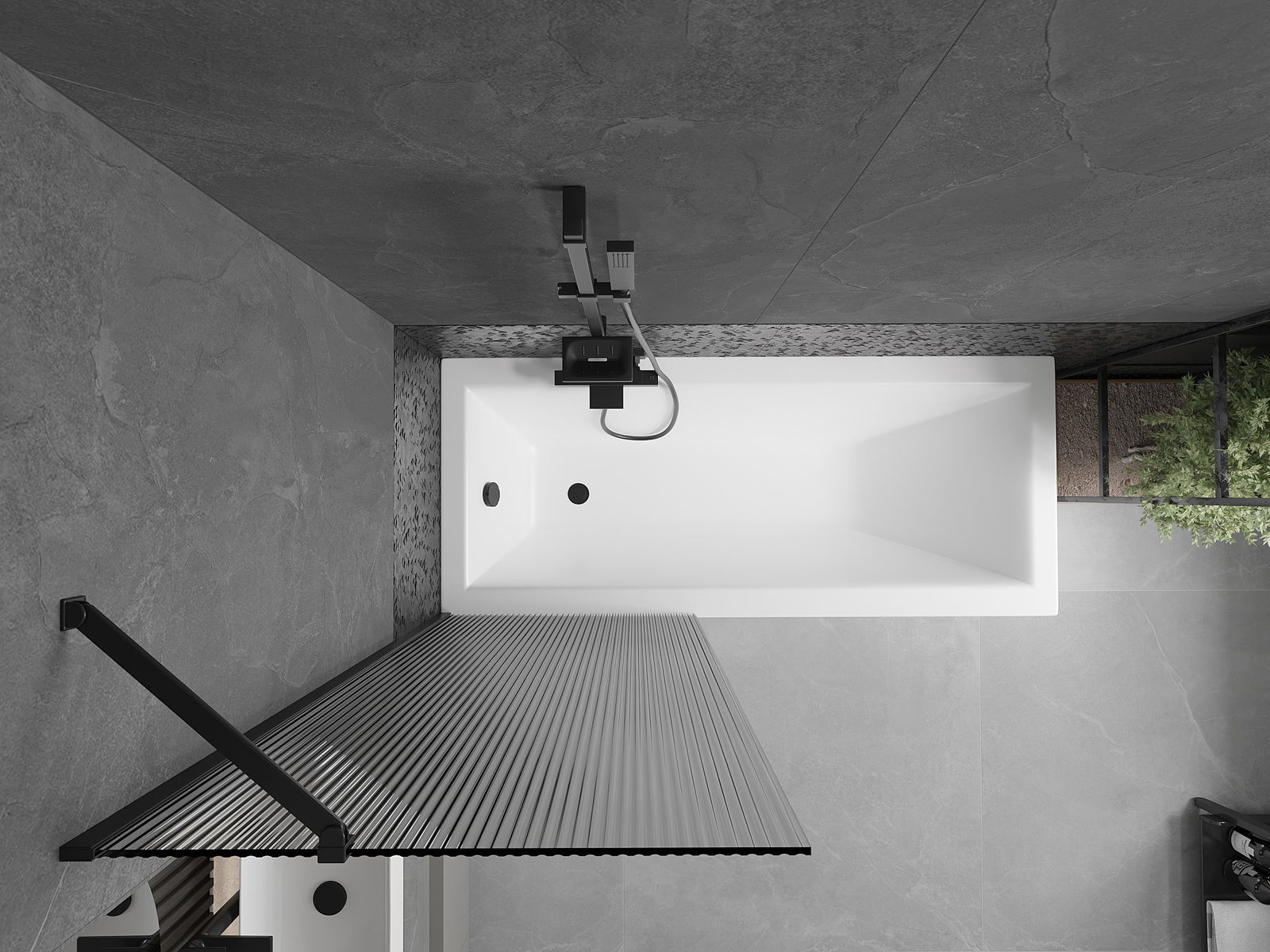 Effektiver Schutz gegen Wasser beim Baden. Der Bildschirm hat Dichtungen, die sich perfekt an das Glas des Glass und an der Badewanne der Badewanne anpassen. Eine funktionale Lösung, um Sicherheit und einfache Wartung zu gewährleisten.