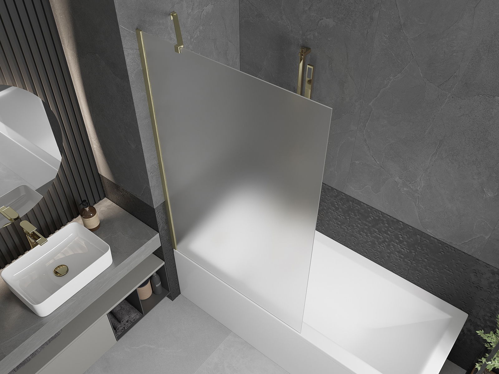 Effektiver Schutz gegen Wasser beim Baden. Der Bildschirm hat Dichtungen, die sich perfekt an das Glas des Glass und an der Badewanne der Badewanne anpassen. Eine funktionale Lösung, um Sicherheit und einfache Wartung zu gewährleisten.
