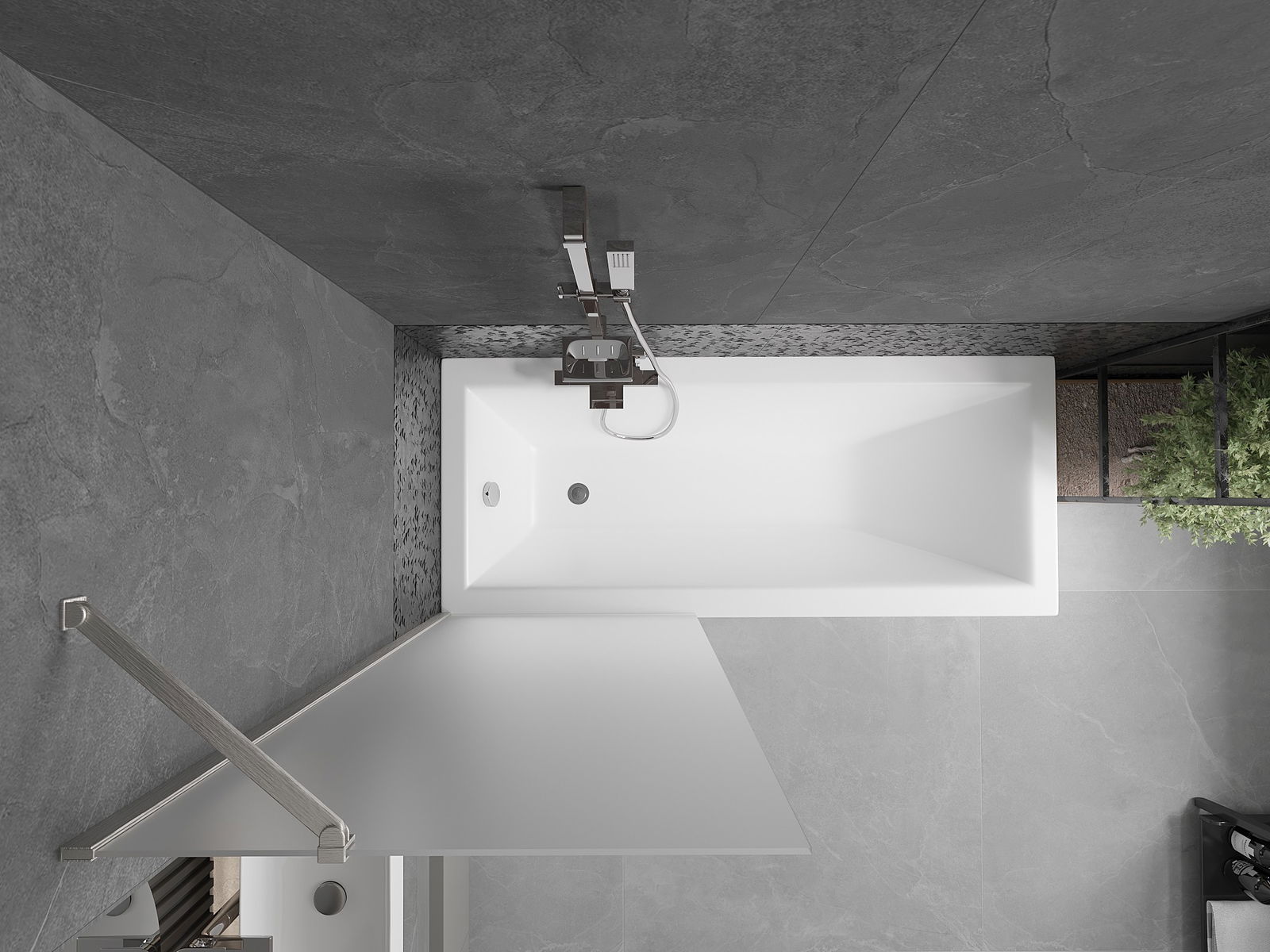 Effektiver Schutz gegen Wasser beim Baden. Der Bildschirm hat Dichtungen, die sich perfekt an das Glas des Glass und an der Badewanne der Badewanne anpassen. Eine funktionale Lösung, um Sicherheit und einfache Wartung zu gewährleisten.
