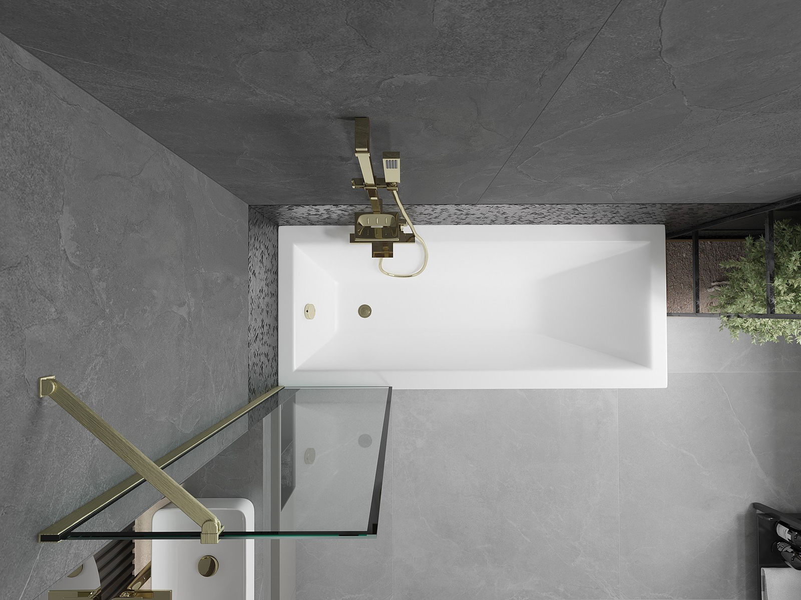 Mexen Next Wannenschirm 1-flügelig 50 x 150 cm, schwarzes Muster, gebürstetes Gold - 895-050-000-00-70-55