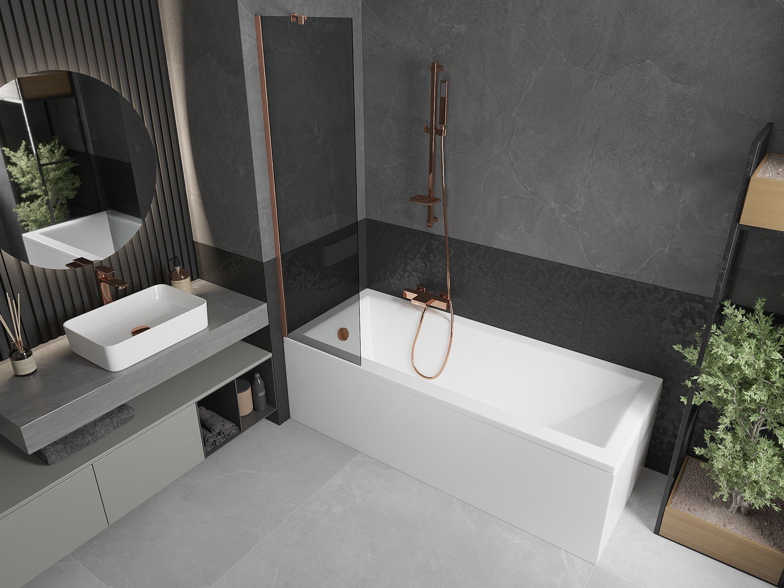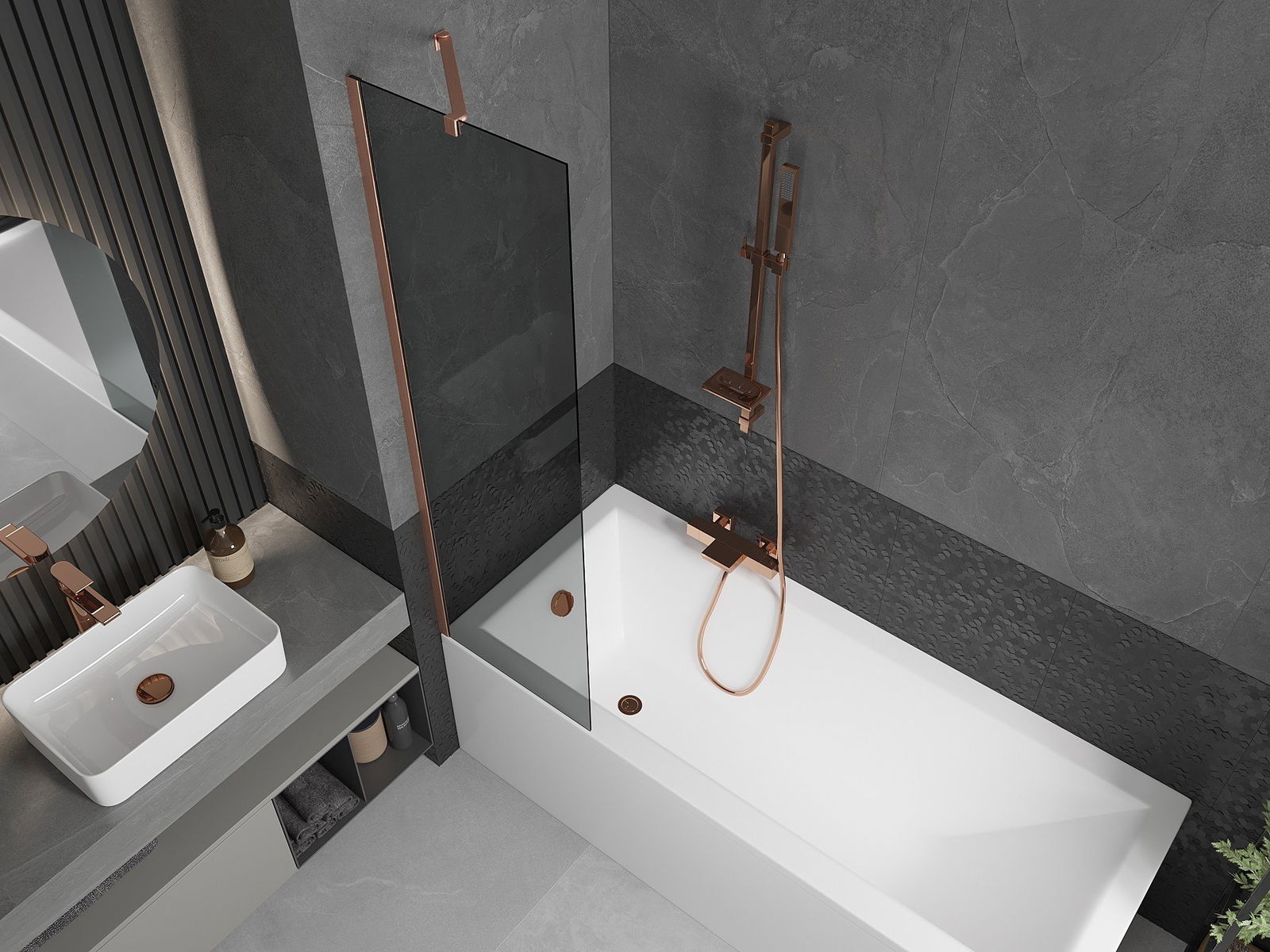 Mexen Next Badewannenabtrennung 1-flügelig 50 x 150 cm, graphit, gebürstetes Kupfer - 895-050-000-00-40-65