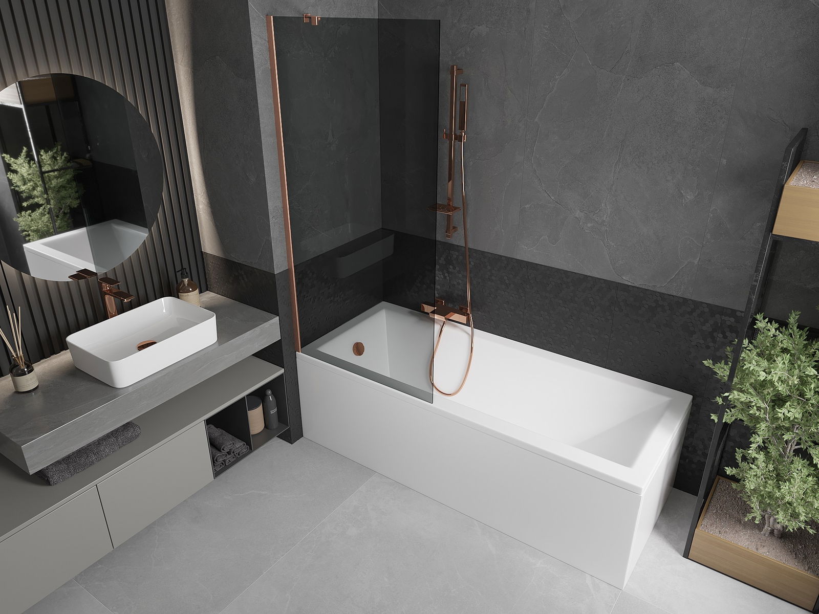 Effektiver Schutz gegen Wasser beim Baden. Der Bildschirm hat Dichtungen, die sich perfekt an das Glas des Glass und an der Badewanne der Badewanne anpassen. Eine funktionale Lösung, um Sicherheit und einfache Wartung zu gewährleisten.