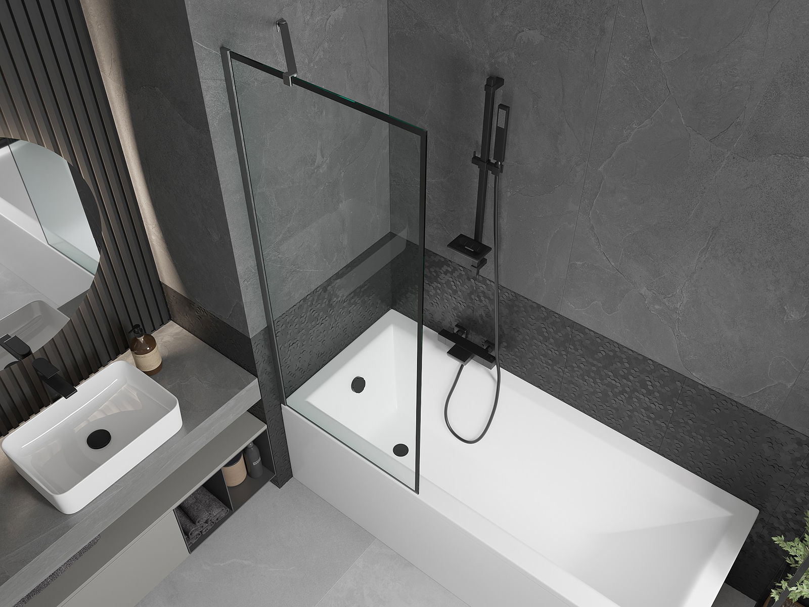 Effektiver Schutz gegen Wasser beim Baden. Der Bildschirm hat Dichtungen, die sich perfekt an das Glas des Glass und an der Badewanne der Badewanne anpassen. Eine funktionale Lösung, um Sicherheit und einfache Wartung zu gewährleisten.