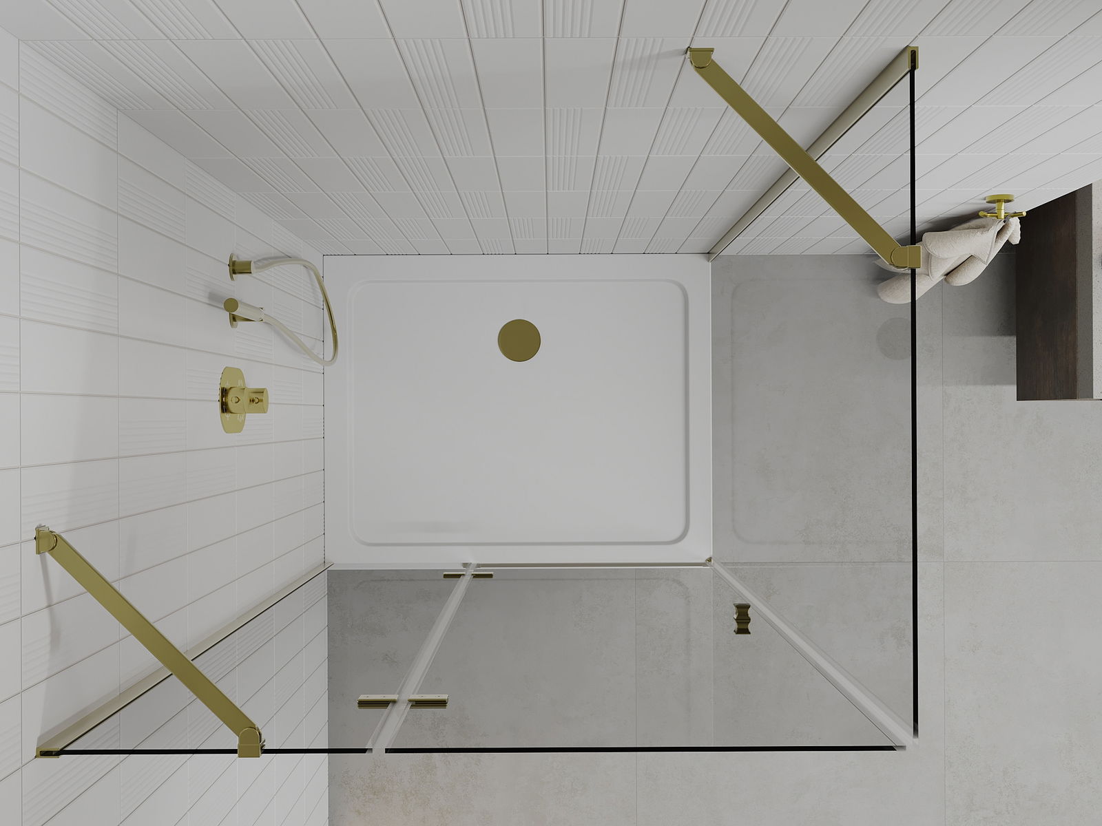 Mexen Roma Duschkabine schwenkbar 100 x 70 cm, transparent, gold + Duschwanne Flat - 854-100-070-50-00-4010