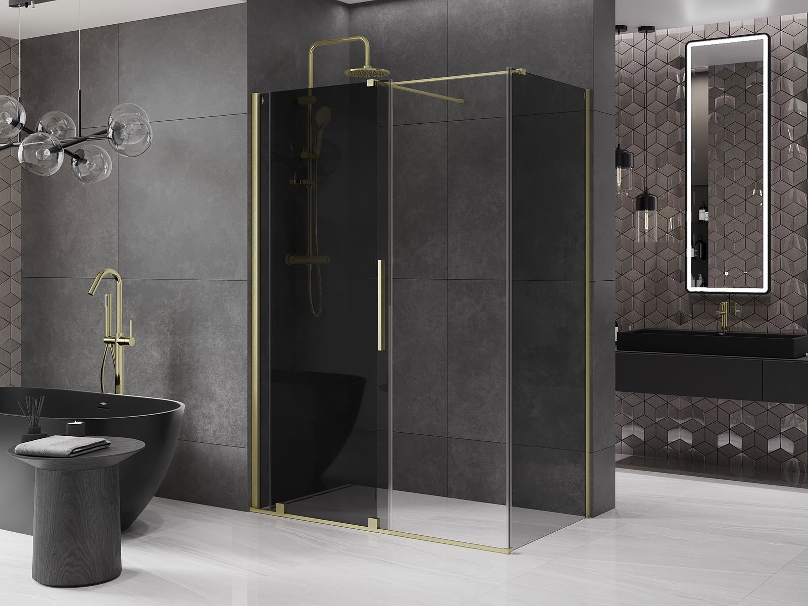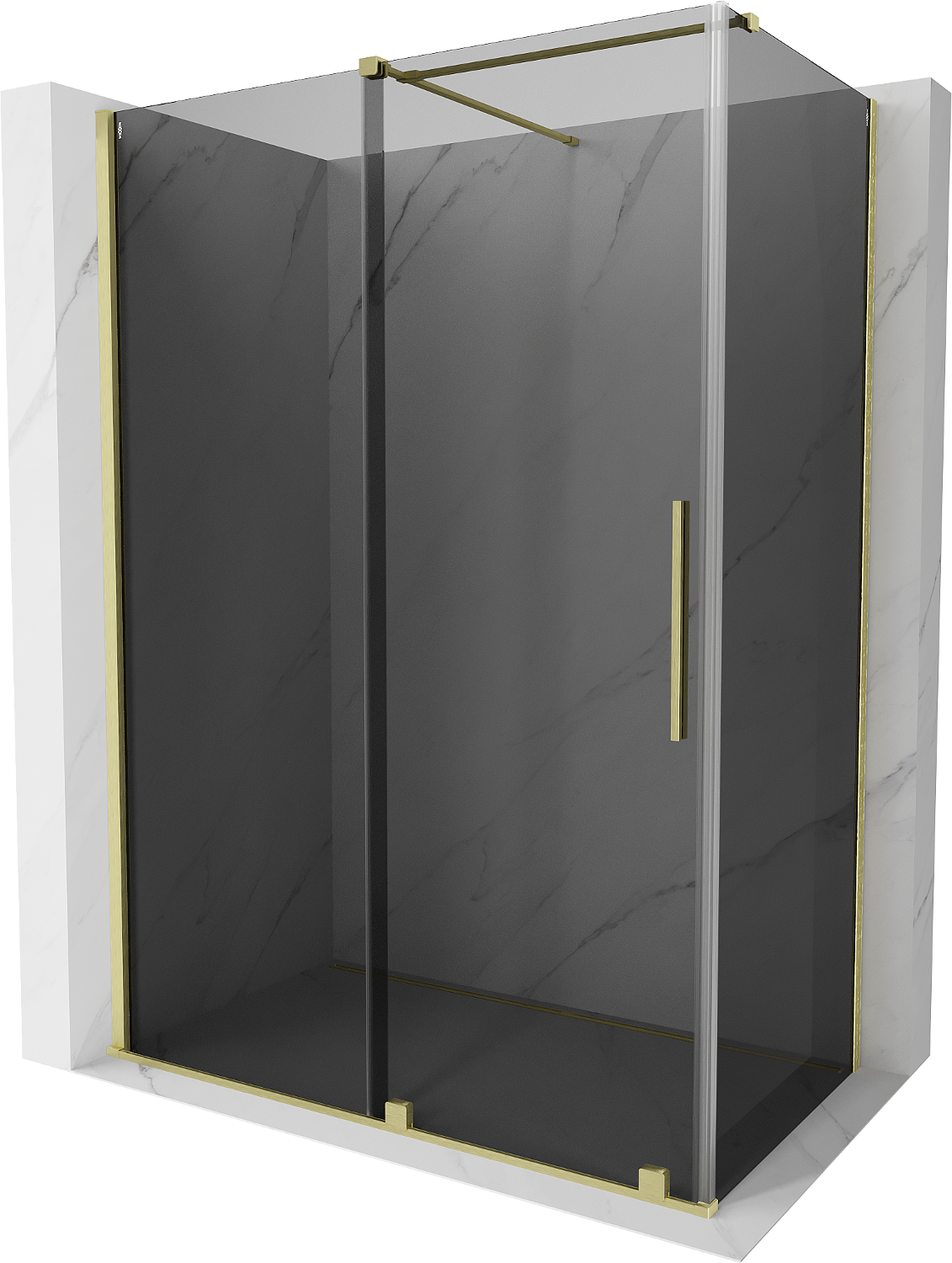 Mexen Velar Duschkabine Schiebetür 160 x 75 cm, Graphit, gebürstetes Gold - 871-160-075-41-55