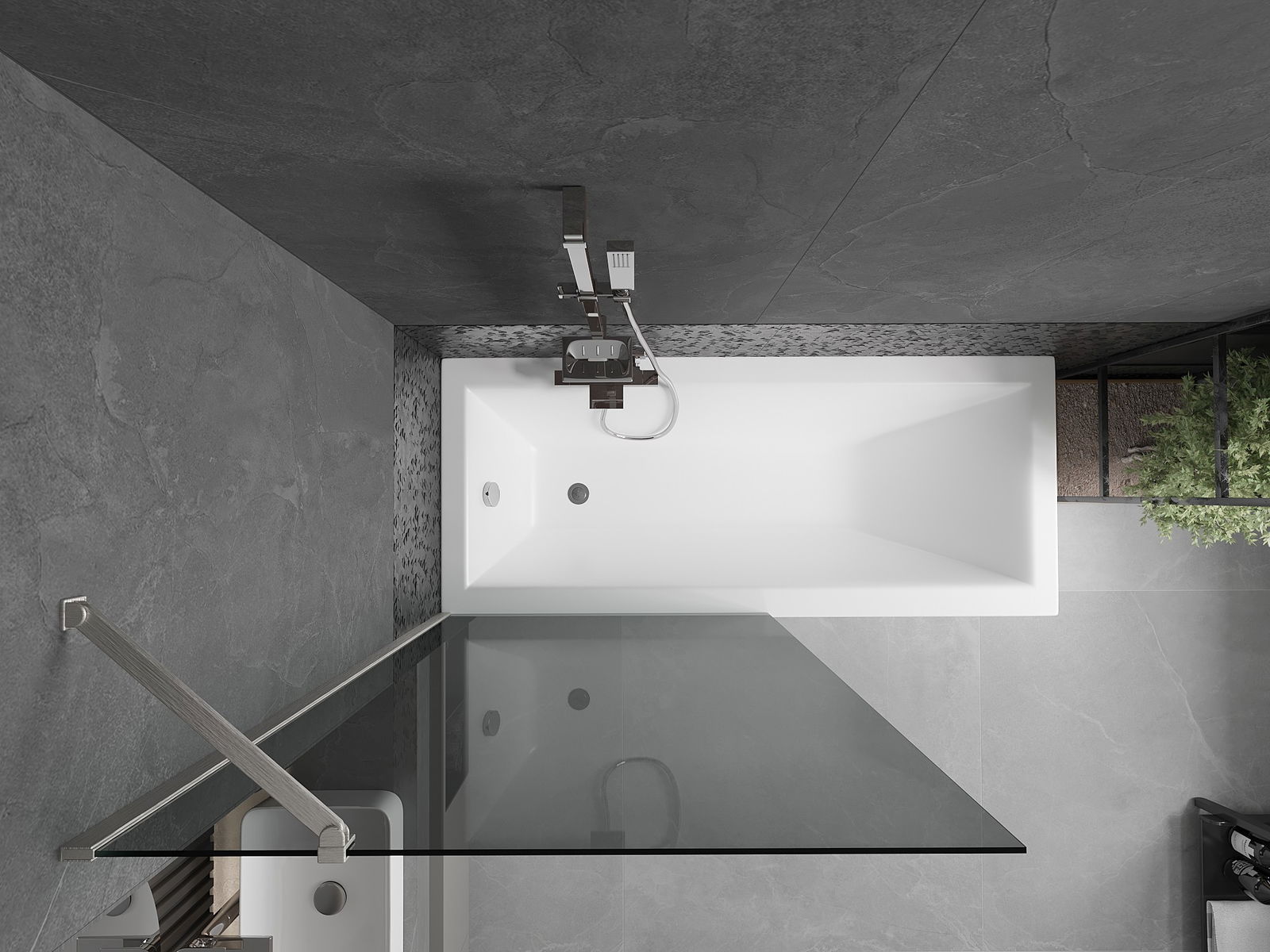 Effektiver Schutz gegen Wasser beim Baden. Der Bildschirm hat Dichtungen, die sich perfekt an das Glas des Glass und an der Badewanne der Badewanne anpassen. Eine funktionale Lösung, um Sicherheit und einfache Wartung zu gewährleisten.