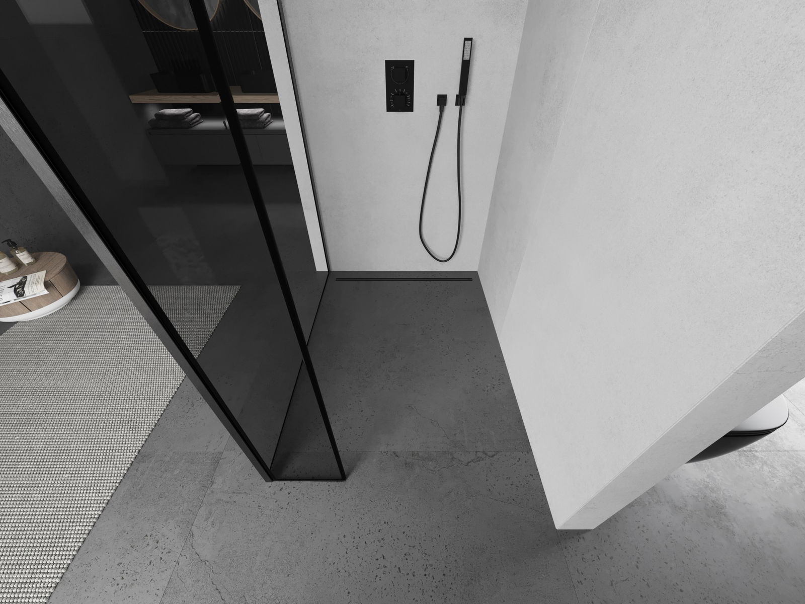 Mexen Kioto Duschwand Walk-in 90 x 40 cm, schwarzer Rahmen, gun gray gebürstet - 800-090-212-66-70-040