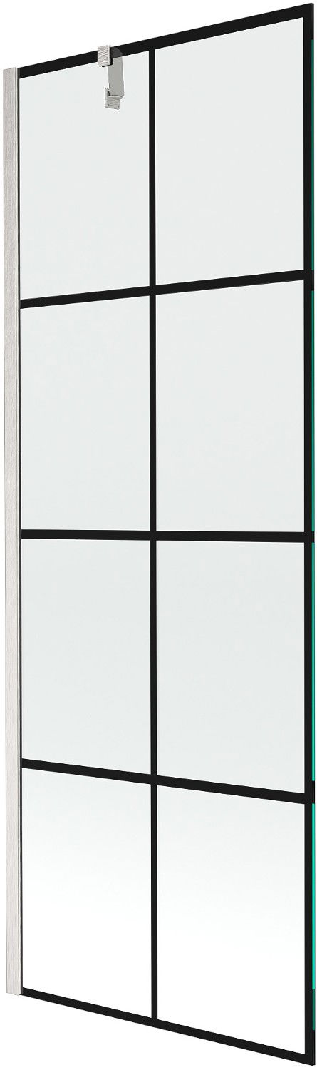 Mexen Next Badewannenabtrennung 1-flügelig 70 x 150 cm, schwarzes Gitter, gebürstetes Nickel - 895-070-000-00-77-97