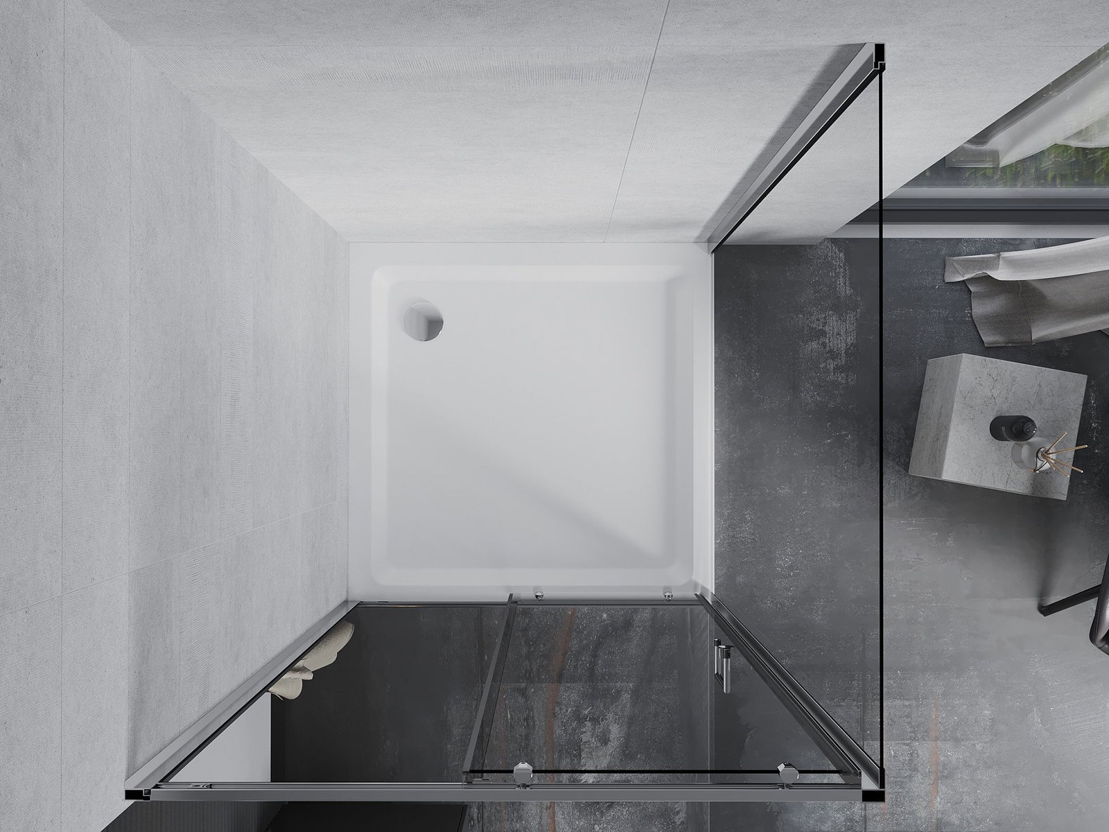 Der praktische und bequeme Griff bestand aus langlebigem und widerstandsfähigem Metall. Die modische Form in Kombination mit einem auf die Farbe der Profile zugeschnittenen Finish verleiht dem Ganzen einen modernen und stilvollen Look und betont die Ästhetik jedes Badezimmers.