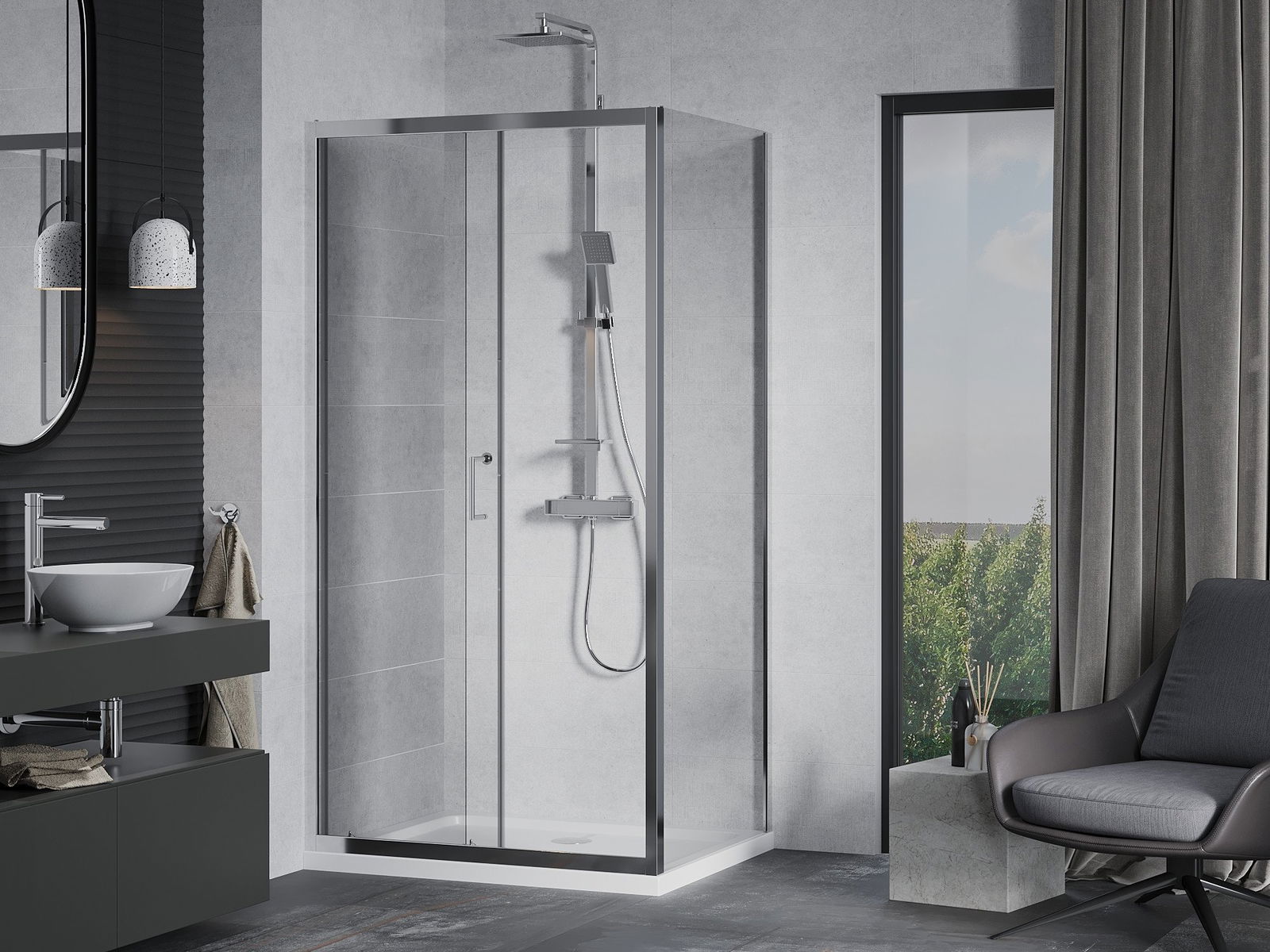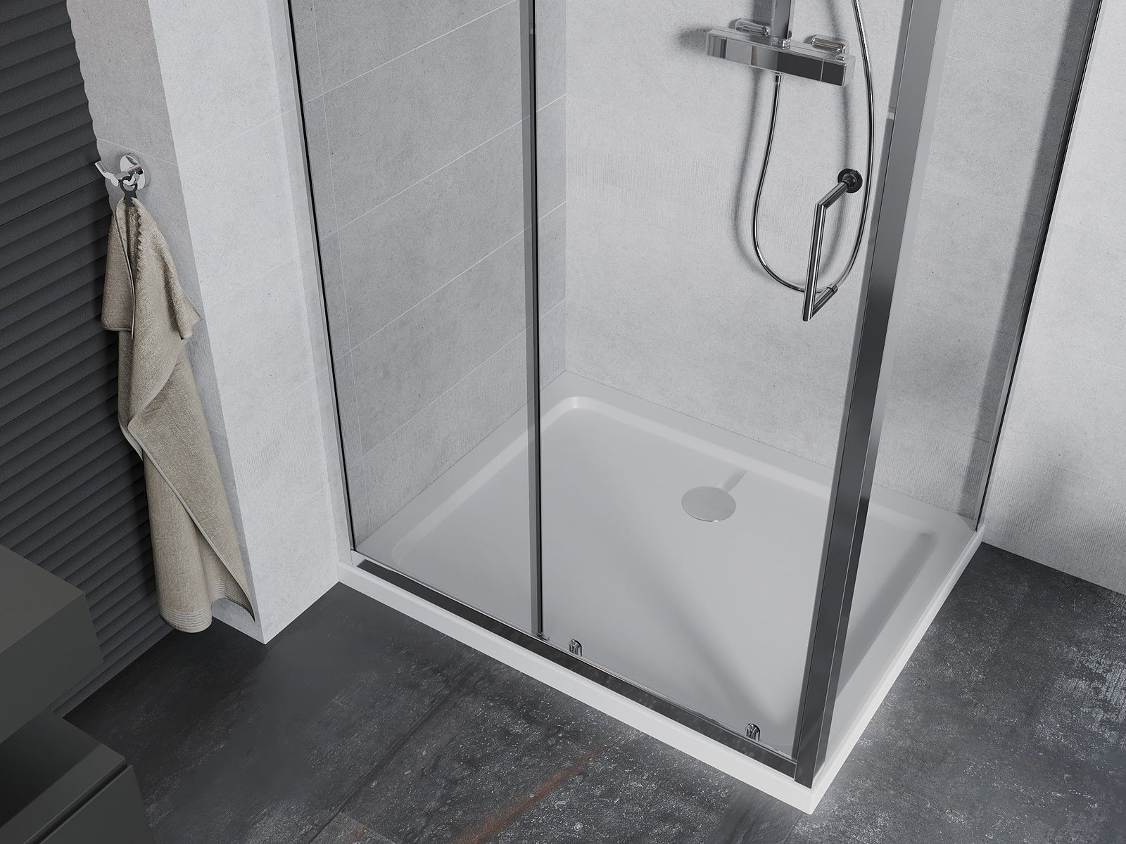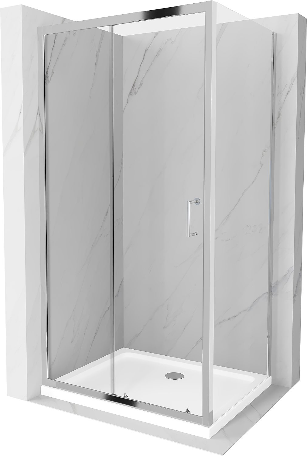 Mexen Apia Duschkabine, Schiebetür, 100 x 80 cm, transparent, Chrom + Duschwanne Flat - 840-100-080-01-00-4010