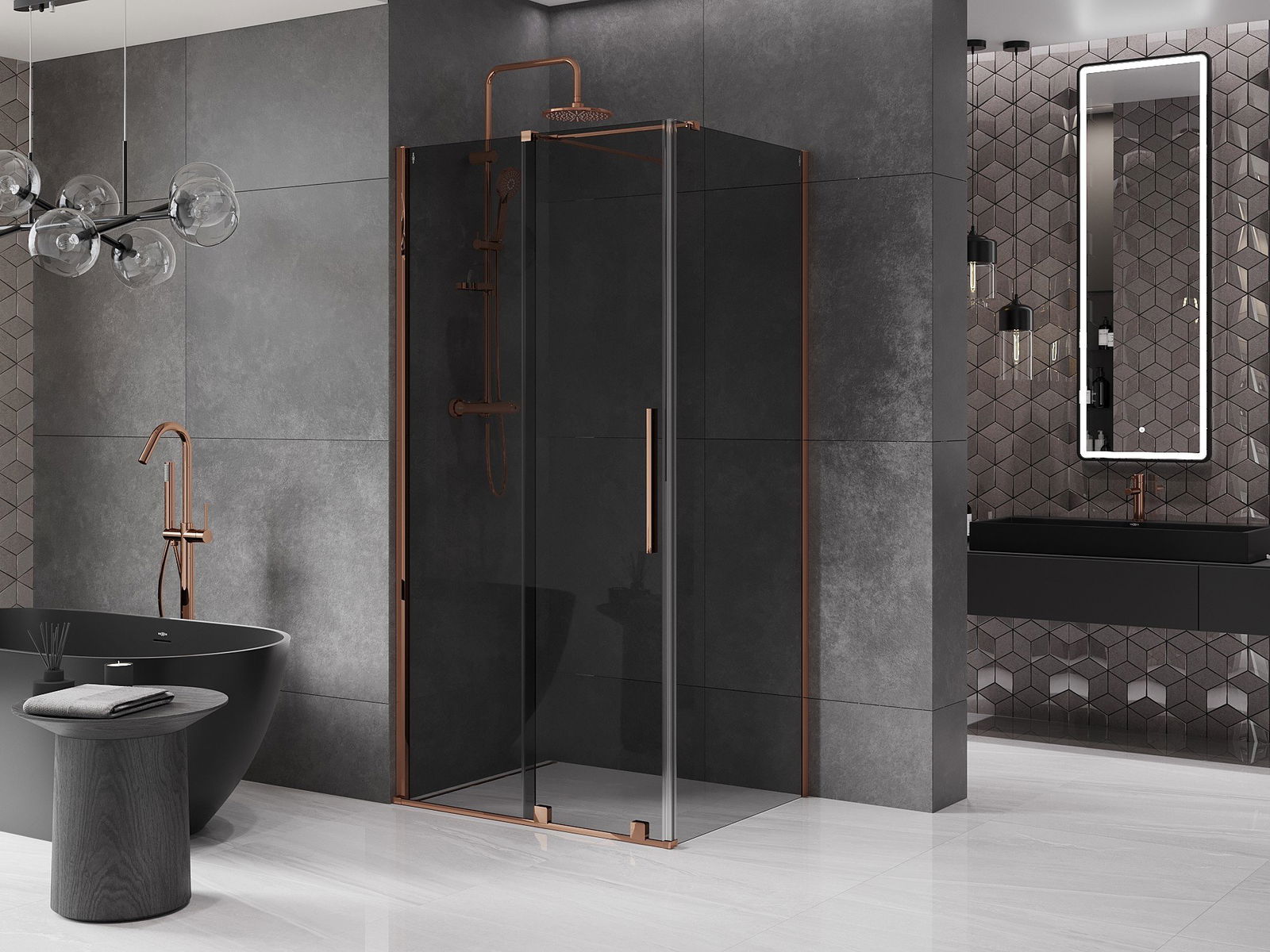 Mexen Velar Duschwand Drehbar 90 x 100 cm, Graphit, Roségold - 871-090-100-41-60