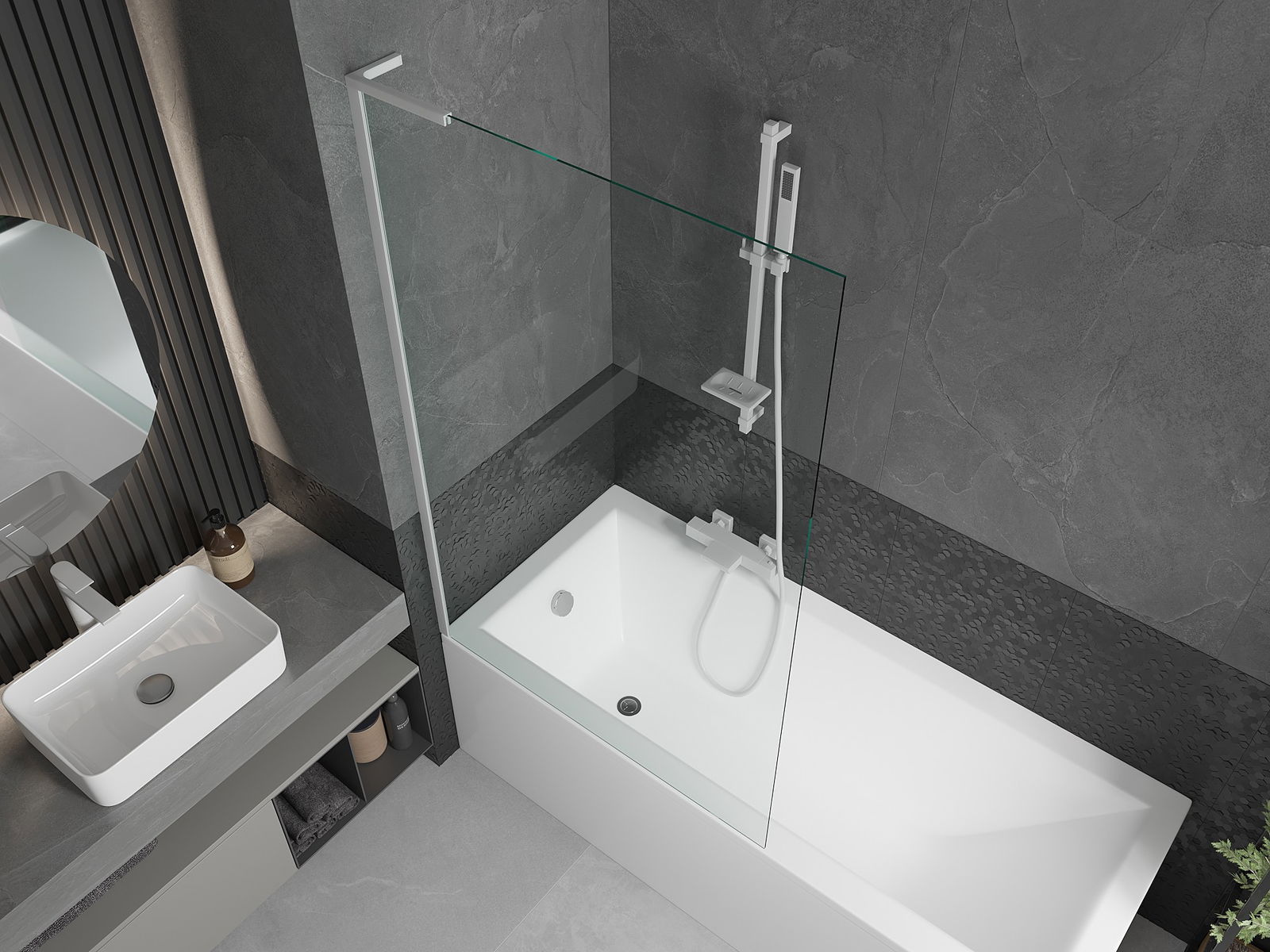 Mexen Next L Badewannenfaltwand 1-flügelig 100 x 150 cm, transparent, weiß - 895-100-000-03-00-20