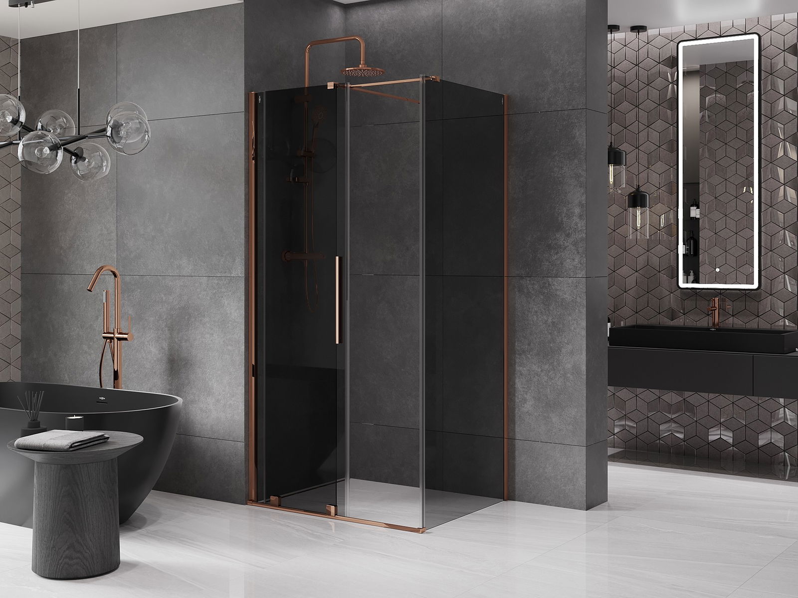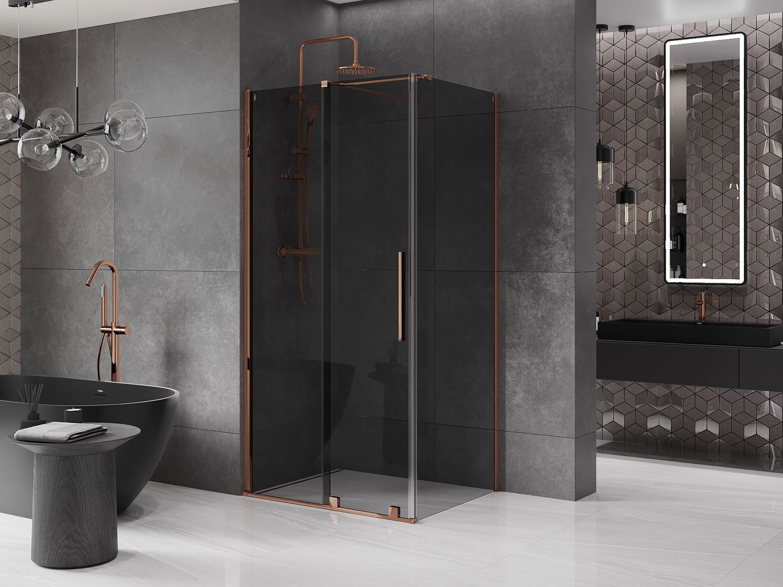 Mexen Velar Duschkabine Schiebetür 110 x 70 cm, Grafit, Roségold - 871-110-070-41-60