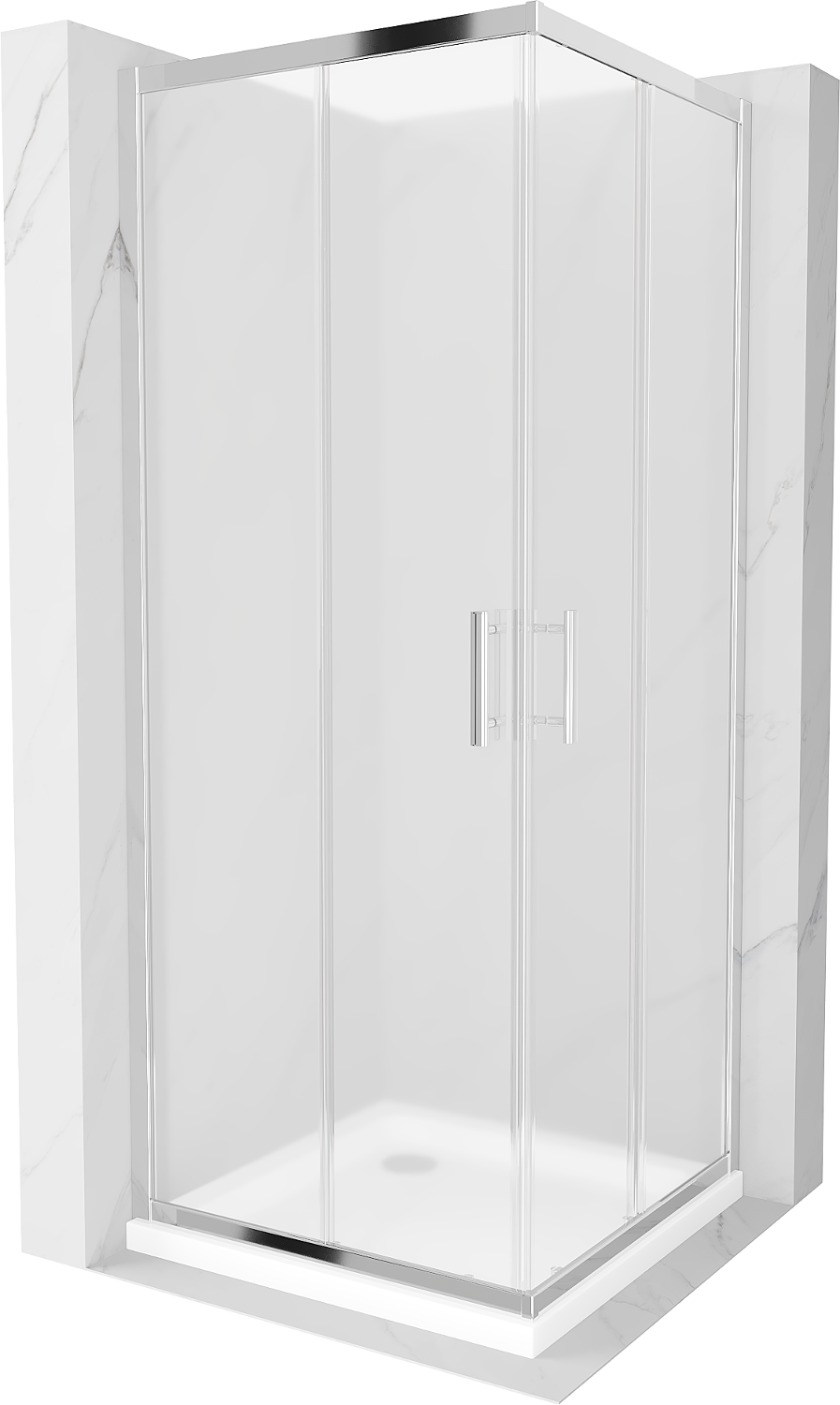 Mexen Rio quadratische Duschkabine 90 x 90 cm, matt, Chrom + Flat-Duschwanne, weiß - 860-090-090-01-30-4010