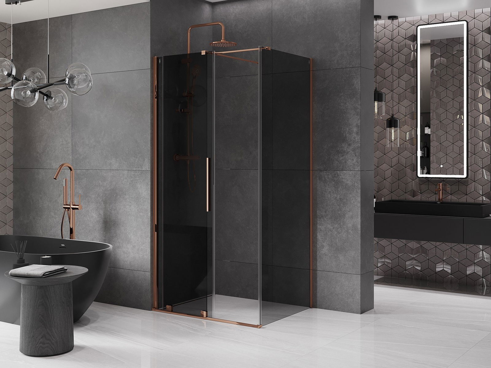 Mexen Velar Duschkabine, Schiebetür, 130 x 85 cm, Graphit, Roségold - 871-130-085-41-60