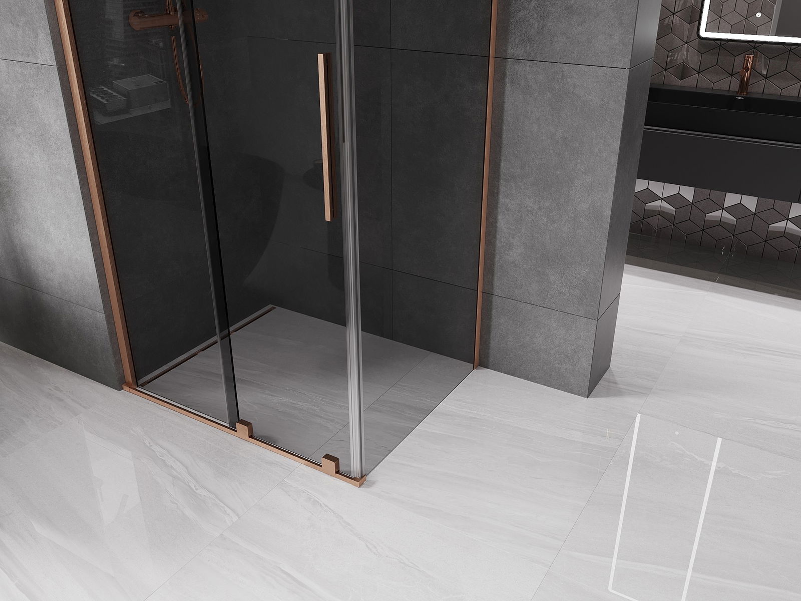 Mexen Velar Duschkabine verschiebbar 150 x 100 cm, Graphit, gebürstetes Kupfer - 871-150-100-41-65